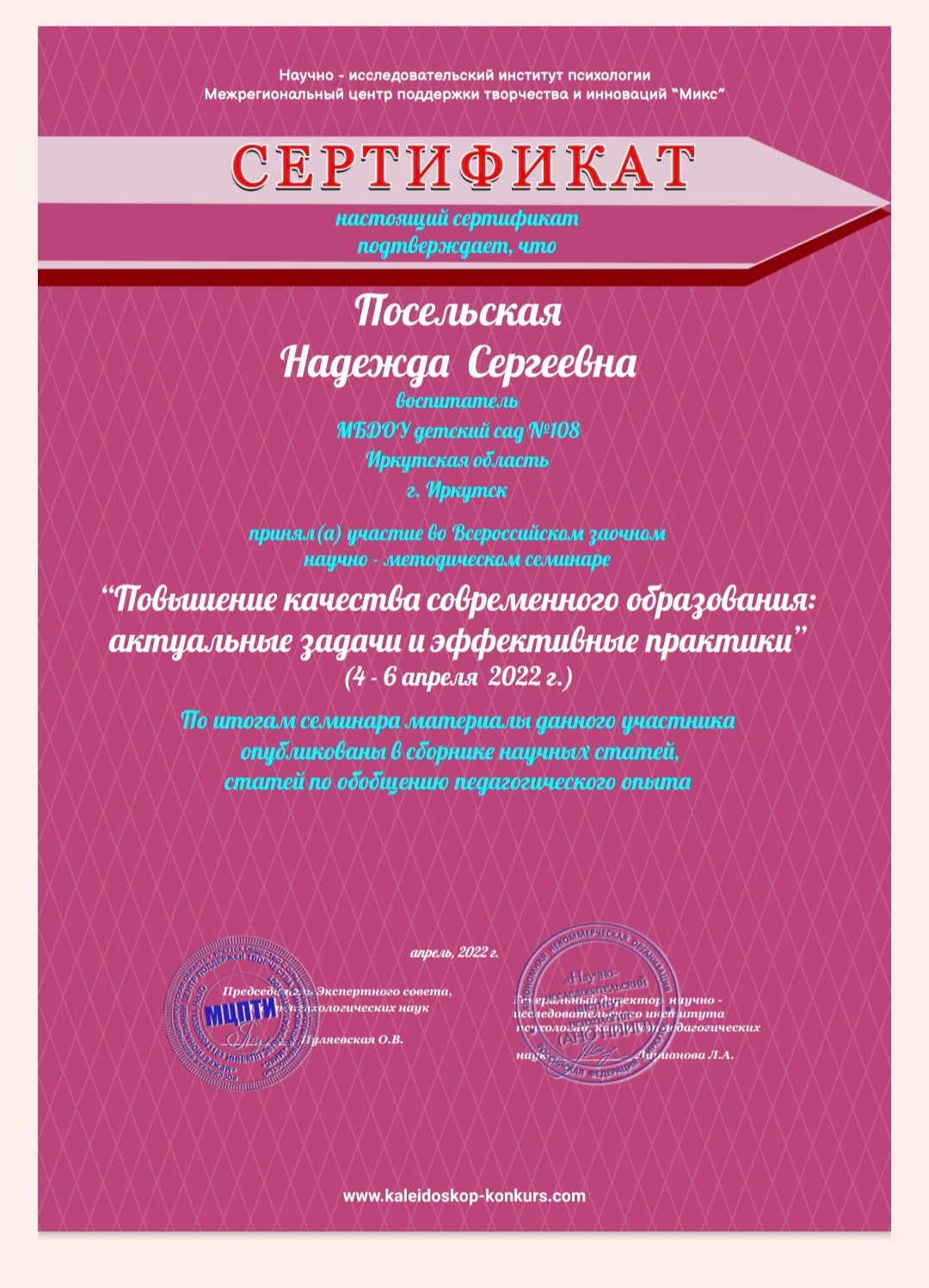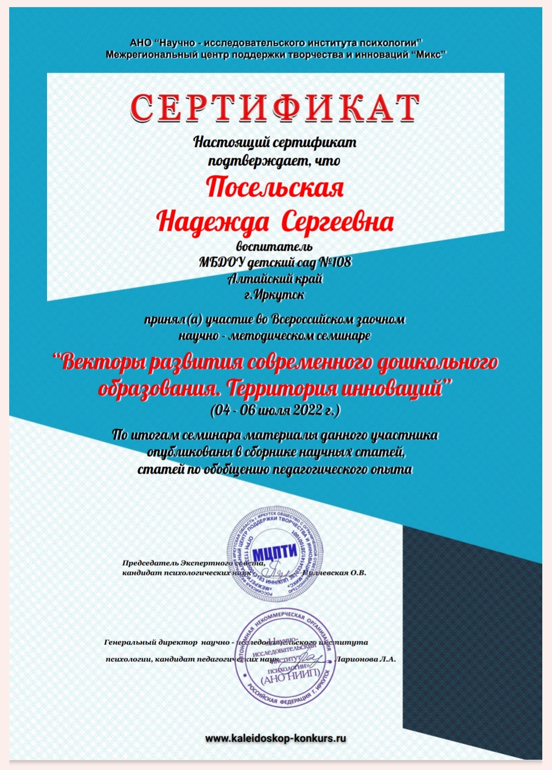 Страничка воспитателя Чередник (Ашалгина) Анны Викторовны