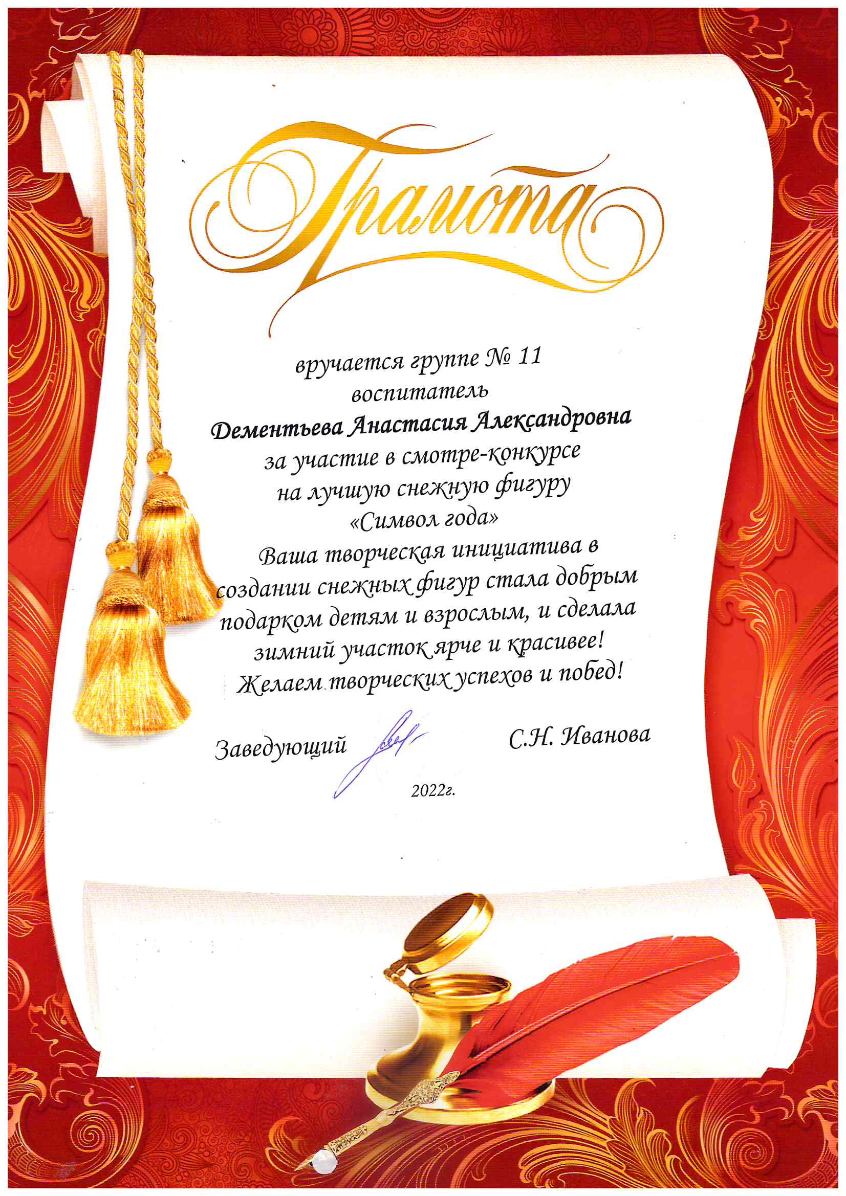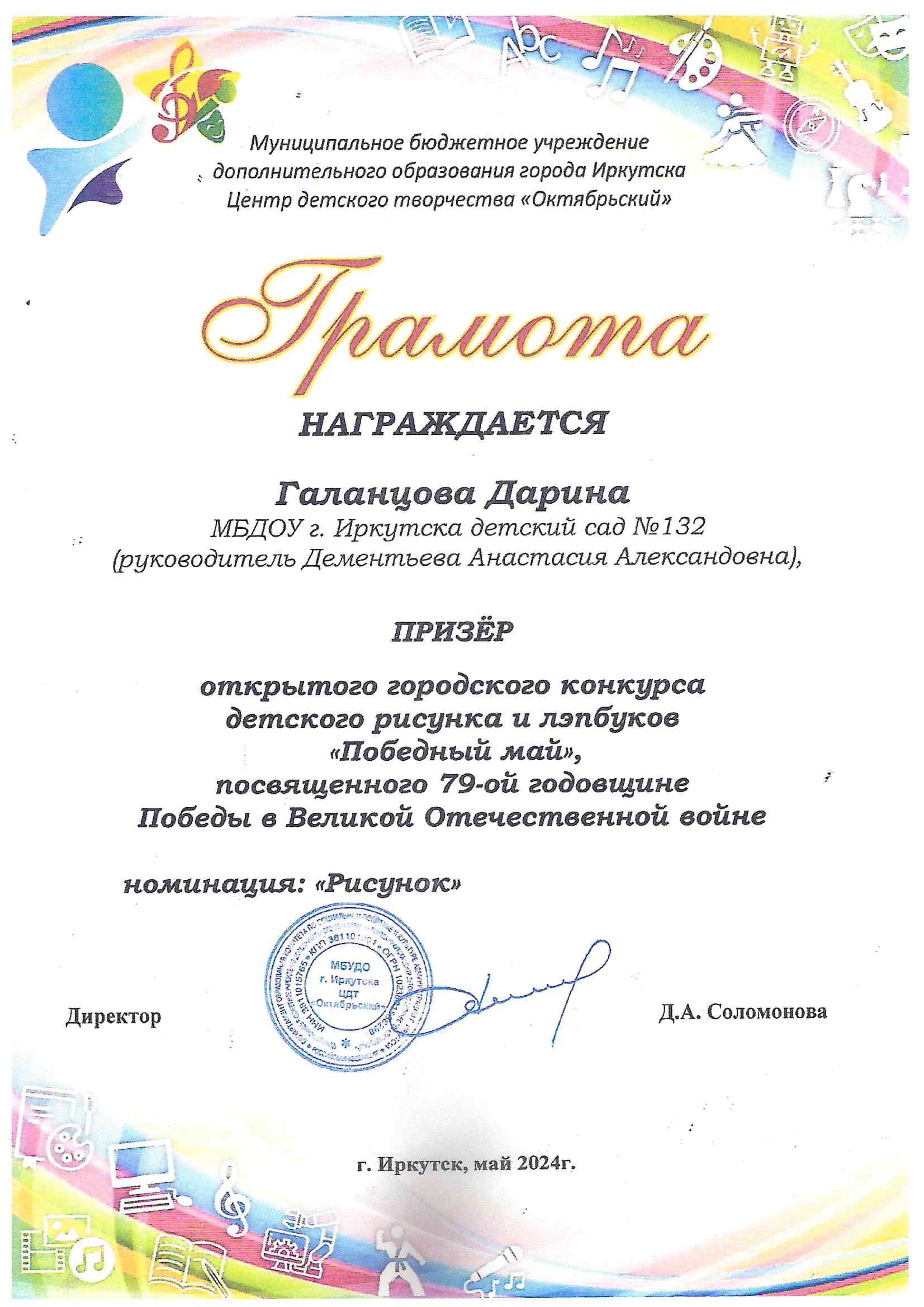 Почетная грамота начальника департамента образования комитета по социальной политике и культуре администрации города Иркутска |