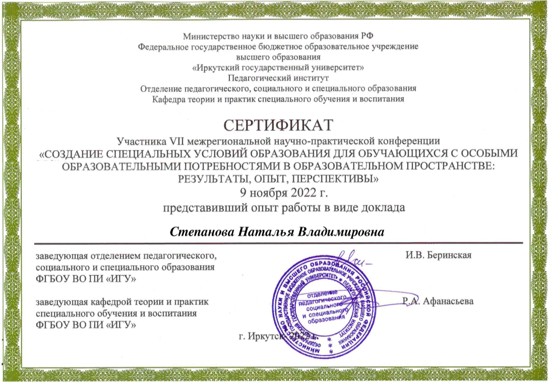 VII межрегиональная научно-практическая конференция «Создание специальных условий образования для обучающихся с ООП в образовательном пространстве: результаты, опыт, перспективы» |