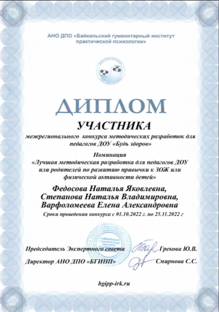 Межрегиональный конкурс методических разработок для педагогов ДОУ «Будь здоров» |