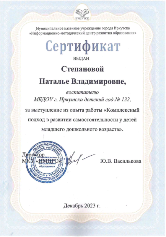 Перечень методических разработок и опыта работы педагогов МДОУ г. Иркутска детский сад № 132