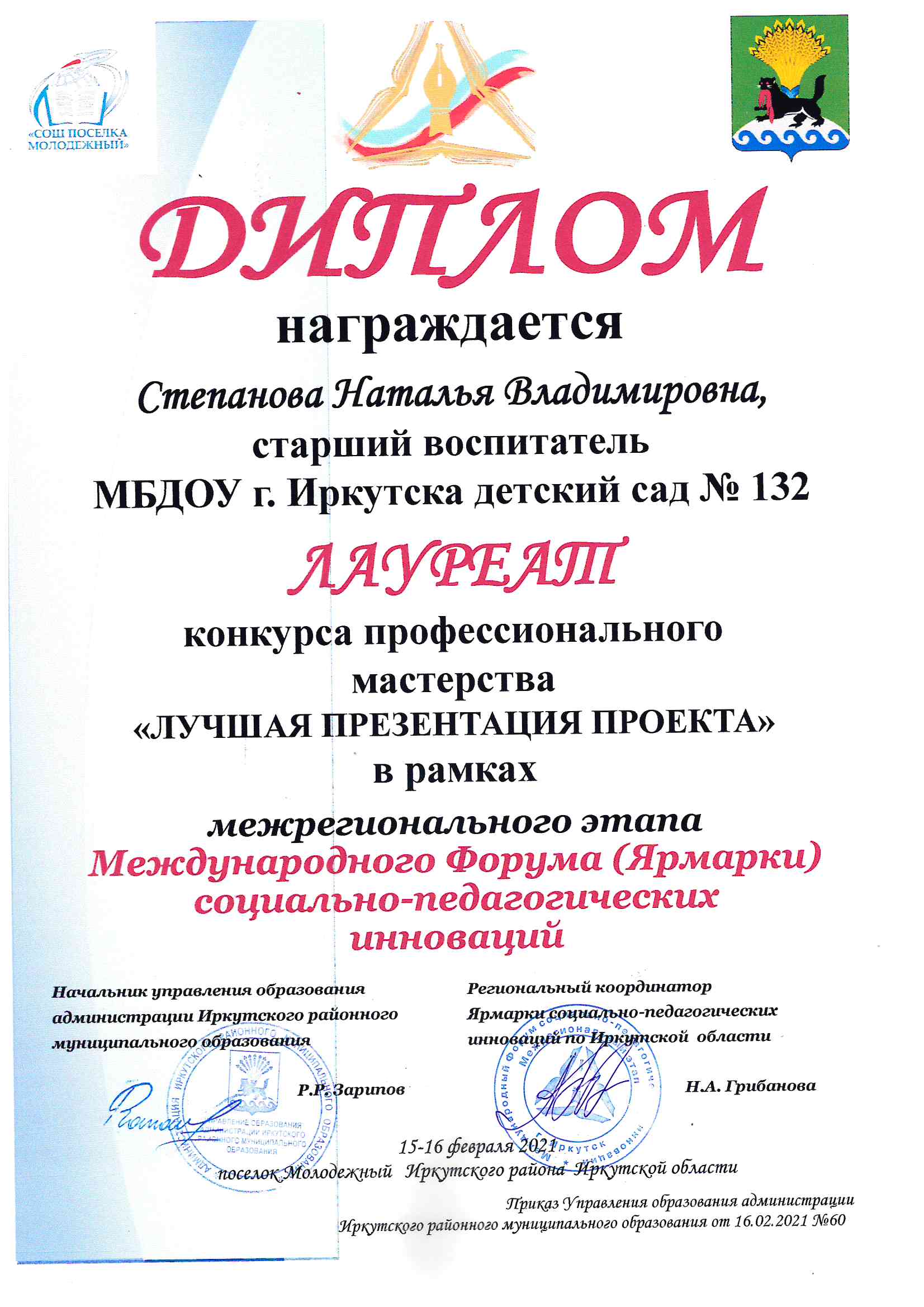 Управление образования администрации Иркутского районного муниципального образования, МКУ Иркутского районного муниципального образования «Ресурсно-методический центр», МОУ ИРМО «СОШ поселка Молодежный» |