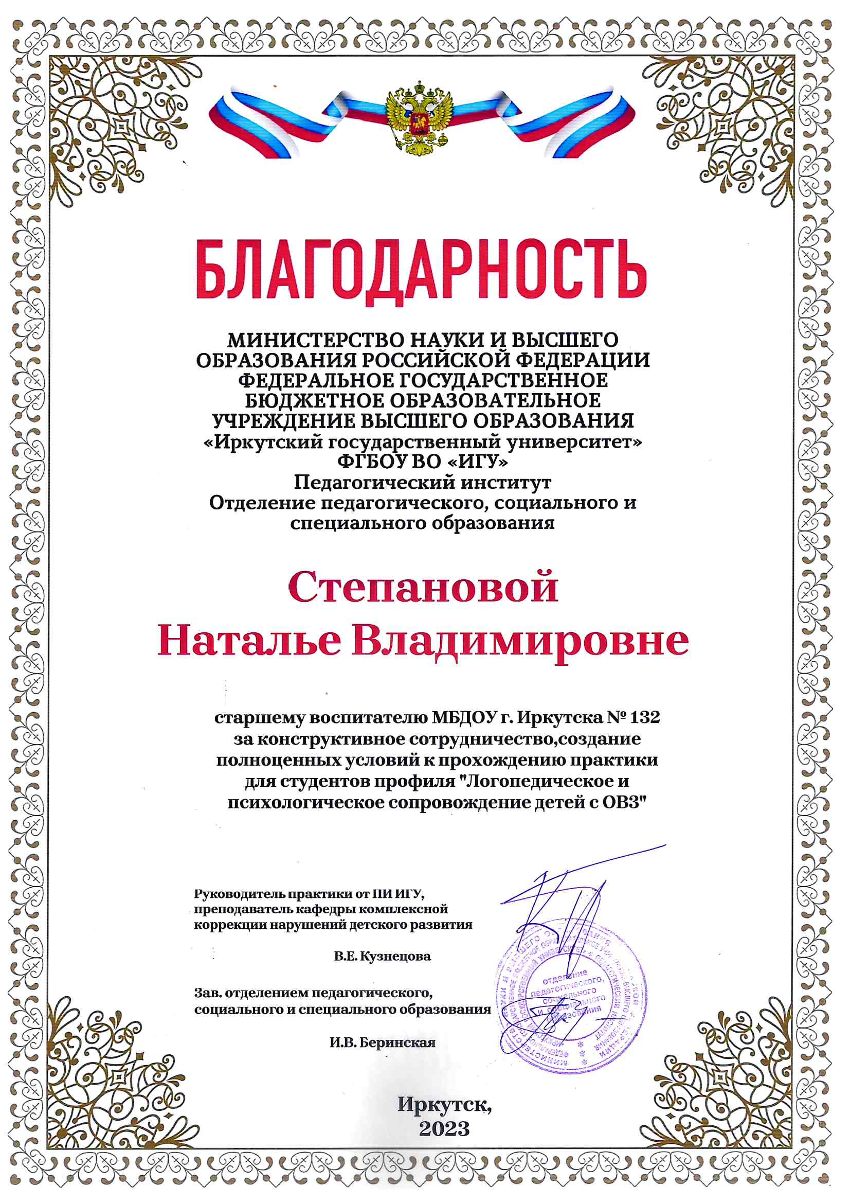 ФГБОУ ВО «ИГУ» Педагогический институт |