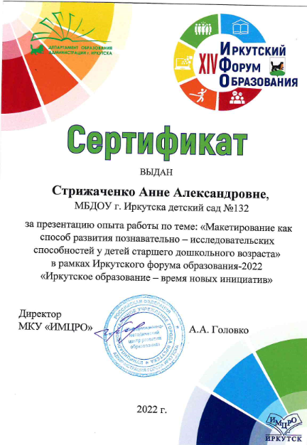 Стрижаченко Анна Александровна — распространение опыта работы, публикации