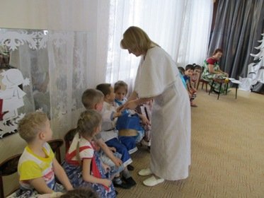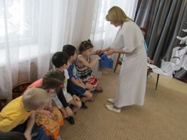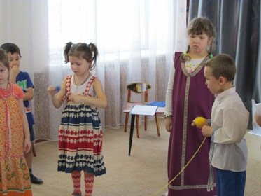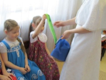 Зима взяла корзинку для гаданий и предлагала ребятам на ощупь взять один предмет из неё.