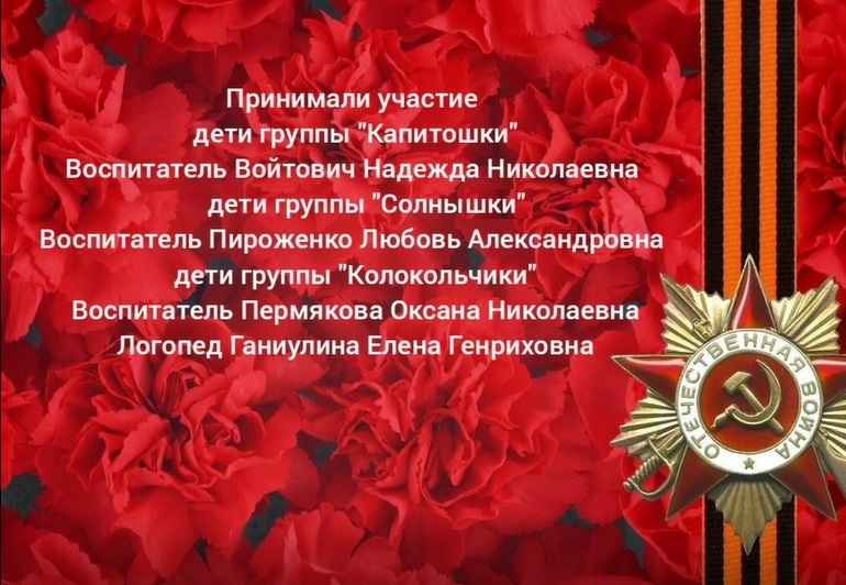 Наши педагоги совместно с воспитанниками и их родителями подготовили видеопоздравление с наступающим праздником — с Днём Победы.