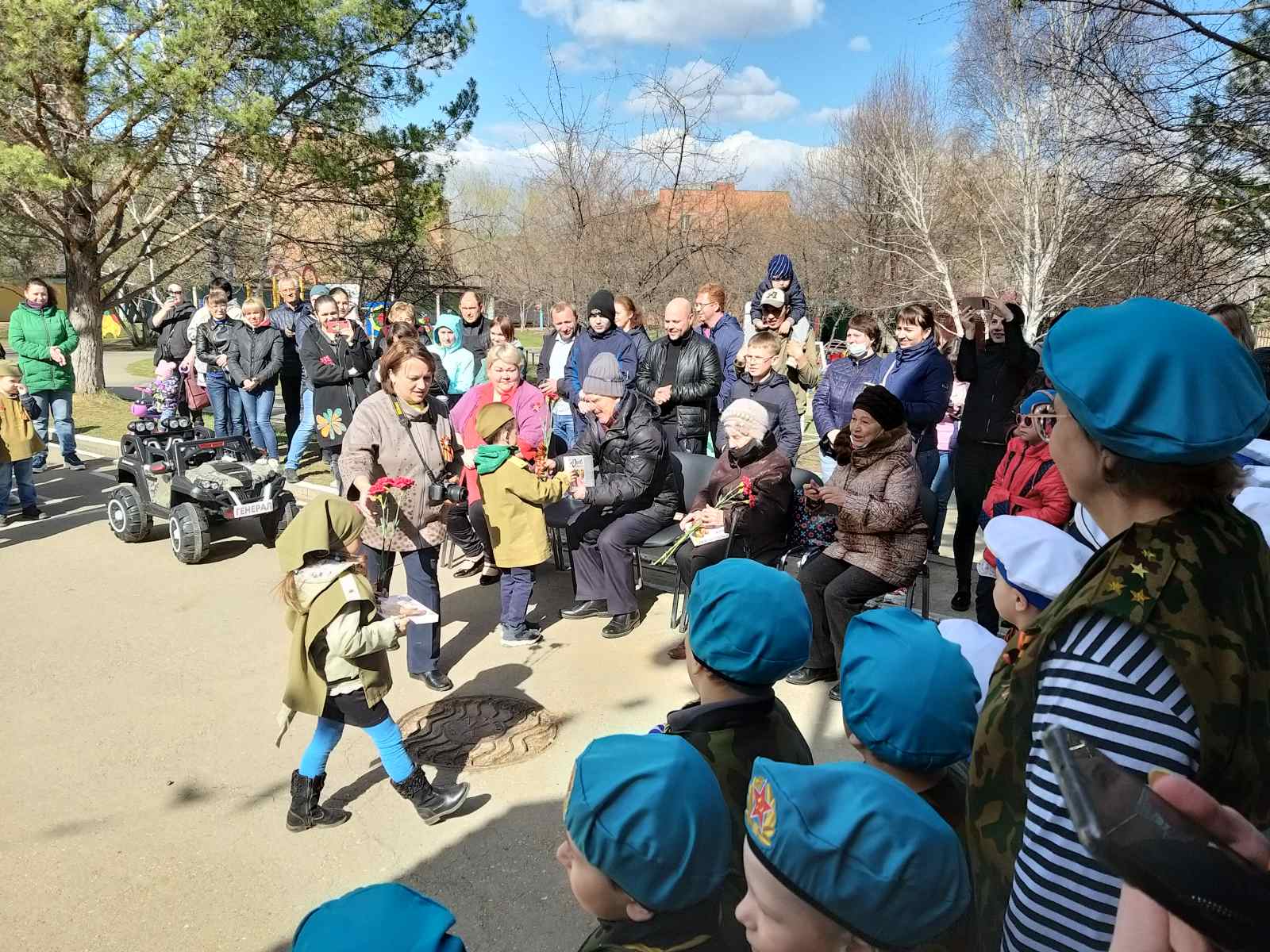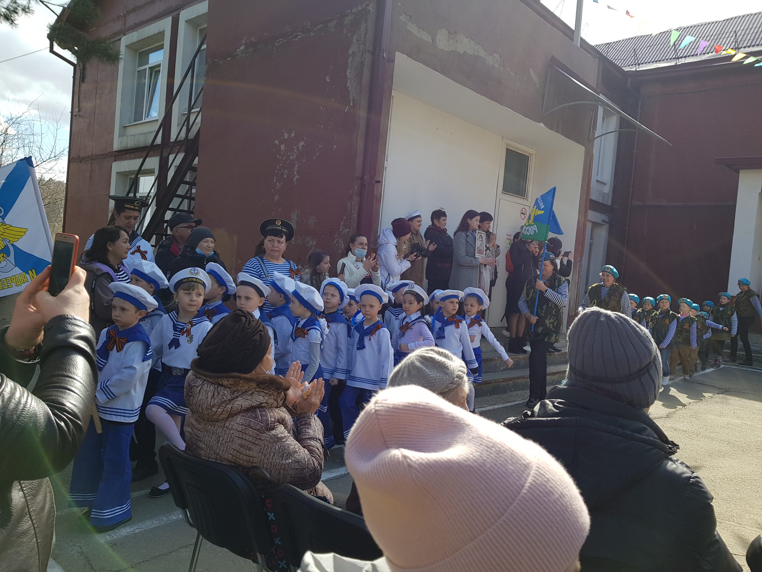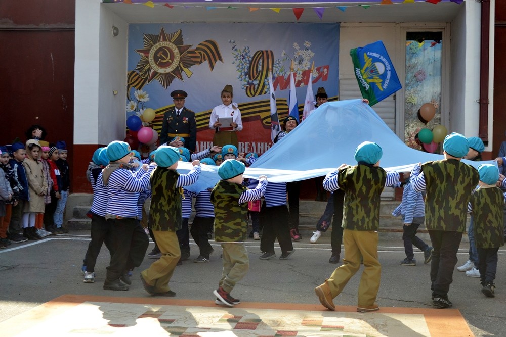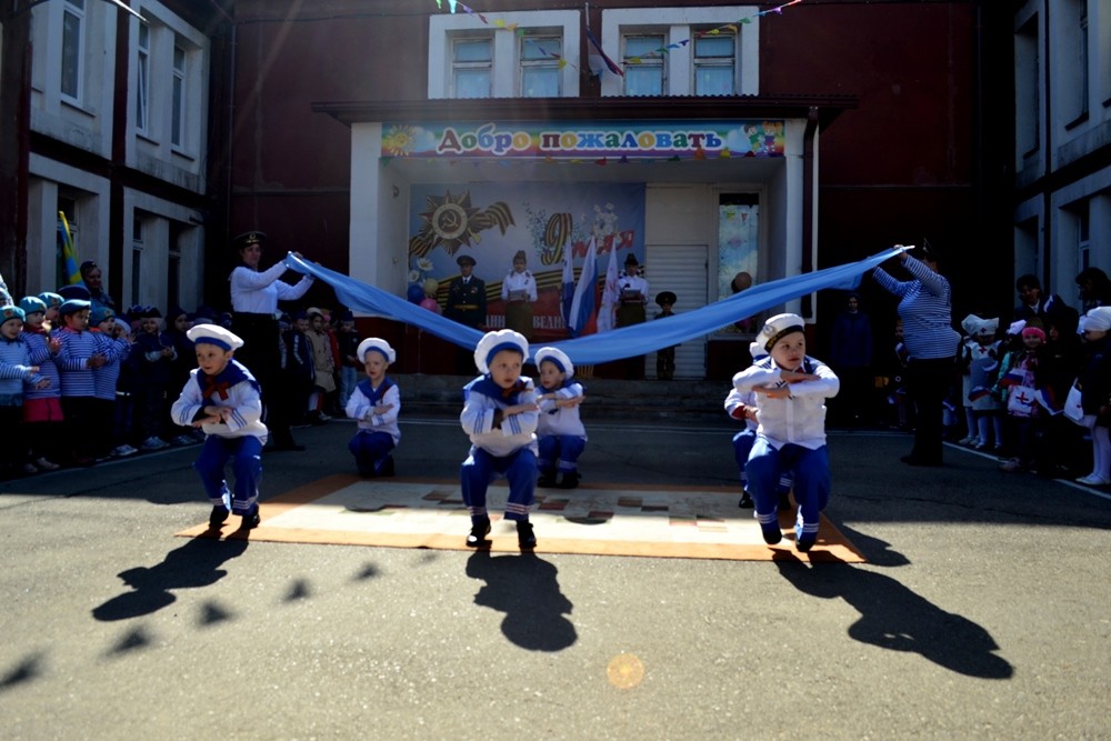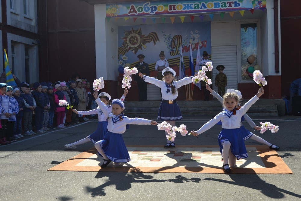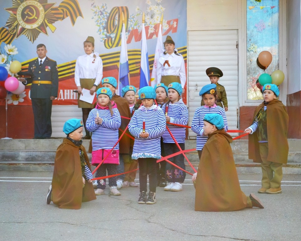 Наши педагоги и воспитанники подготовили для гостей Парада различные танцевальные номера: «Весенний вальс» в исполнении девочек группы «Колокольчики», «Матросский танец «Яблочко» в исполнении мальчиков группы «Колокольчики», «Танец десантников» в исполнении мальчиков групп «Журавлики» и «Жаворонки», композиция «Через века, через года помните…» в исполнении воспитанников группы «Журавлики». В конце хор педагогов и детей исполнил песню «Навечно, в нашей памяти».
