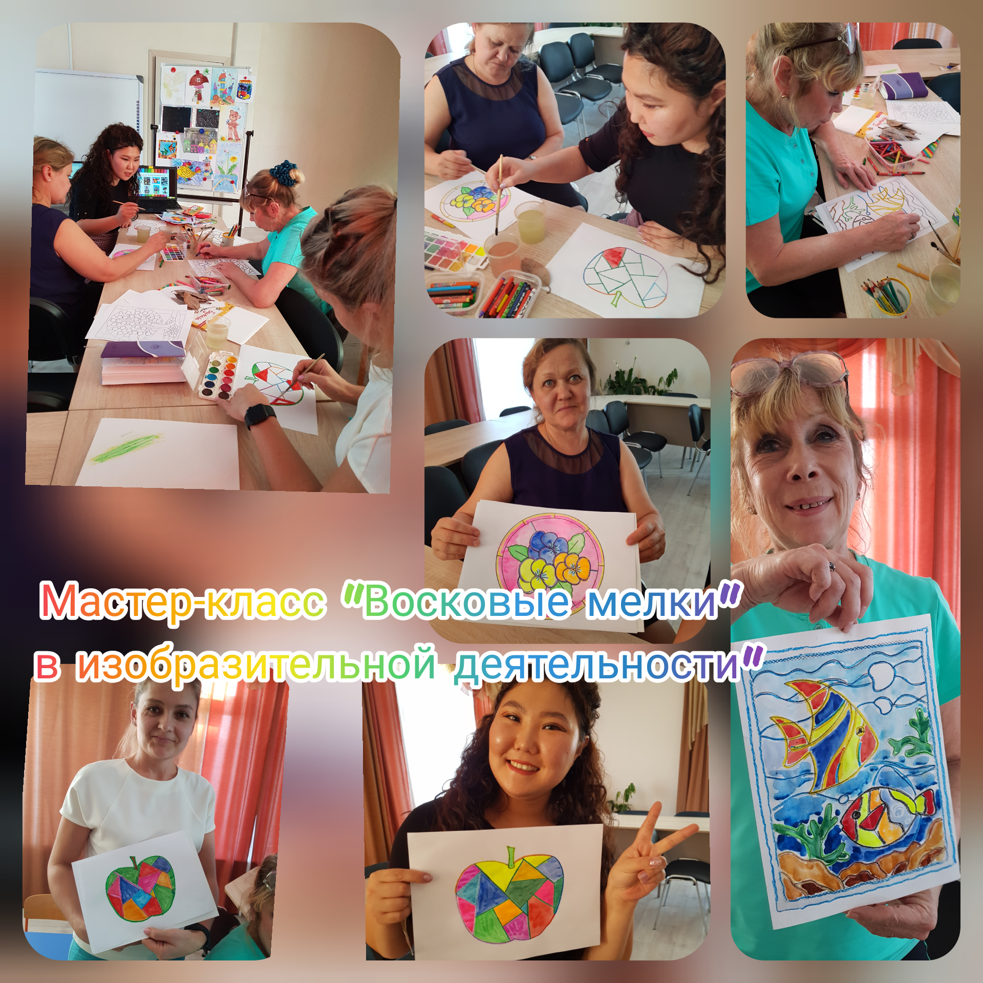 Мастер-класс «Мастерская Сибирячка» провели педагоги Булутова Валентина Николаевна и Бедных Ольга Евгеньевна. Мастер-класс «Восковые мелки в изобразительной деятельности с дошкольниками» провела с педагогами Ильина Елена Владимировна.