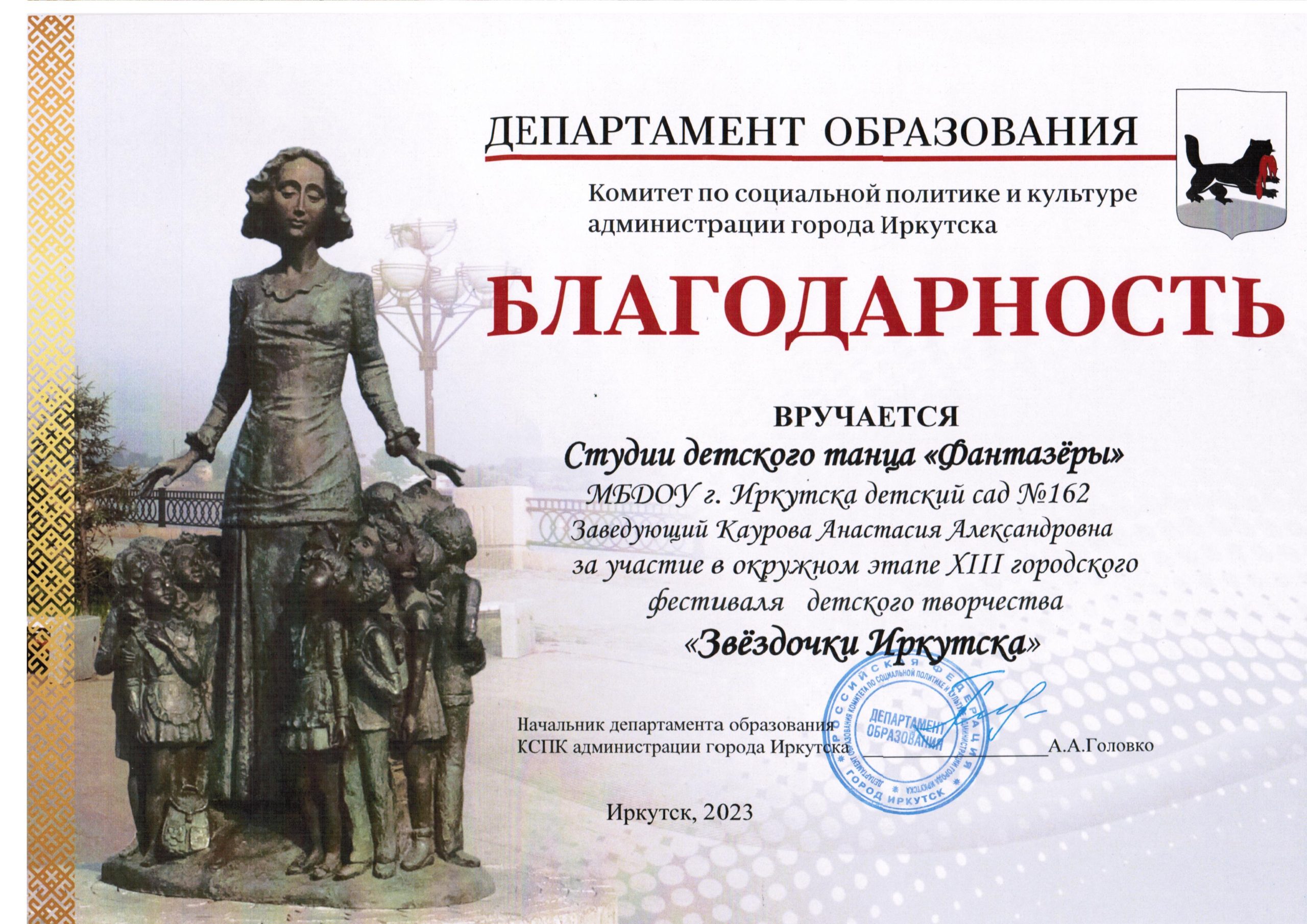 14 апреля воспитанники нашего ДОУ принимали участие в окружном этапе XIII городского фестиваля детского творчества «Звёздочки Иркутска».