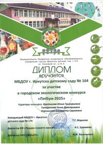 | Воспитанники подготовительной группы №3 со своим воспитателем, Мишениной Олесей Николаевной. стали победителями конкурса «ПЭТбум-2024» и получили в подарок саженец рябины, который посадили на участке детского сада, а также 2 сертификата по 500 рублей в книжный магазин «ПродаЛитЪ» и мы приобрели замечательную книгу — «Байкал — чудо России.» | ![]() |