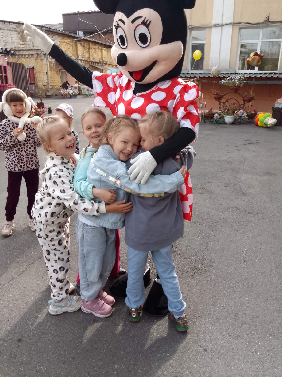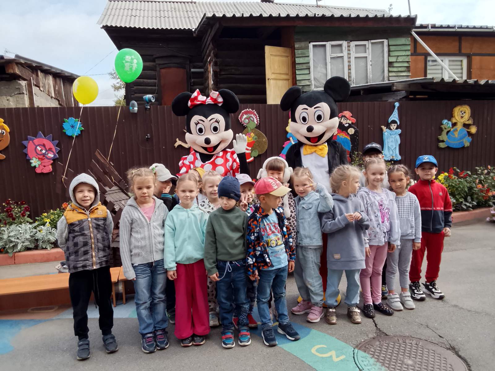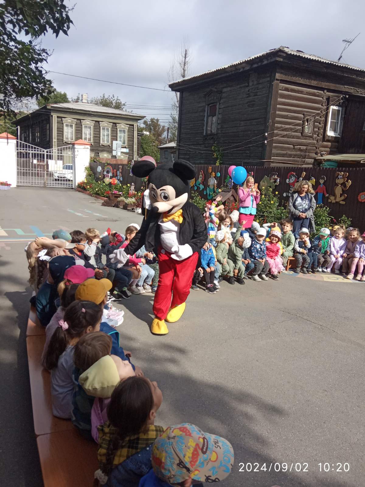 К детям в гости пришли весёлый Микки Маус и Минни Маус. Они играли с детьми в игры, танцевали, читали стихи про День Знаний, веселились.
