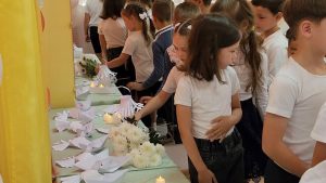 В завершении мероприятия дети почтили память минутой молчания, зажгли свечи, возложили цветы.