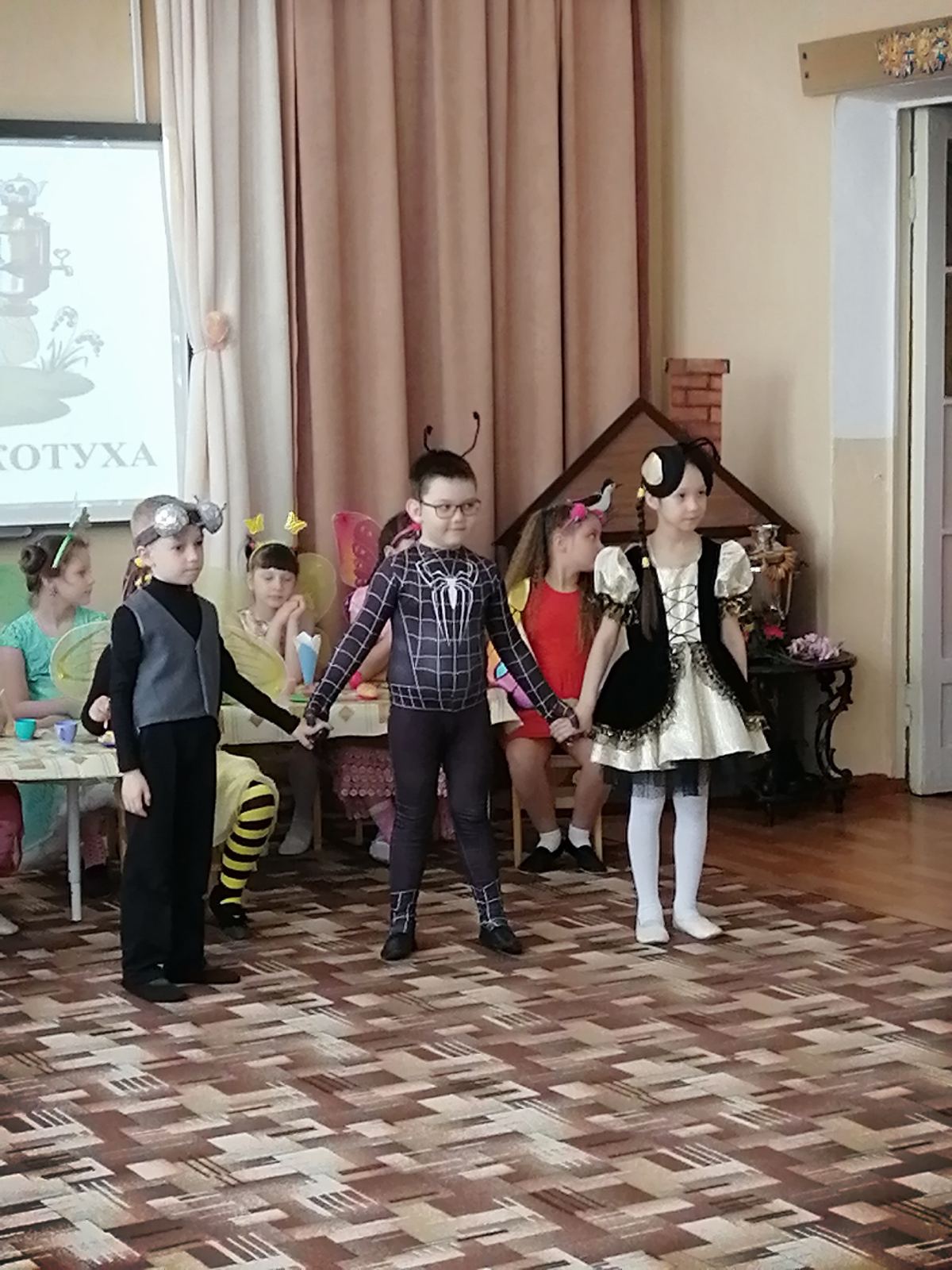 Все зрители очень волновались за Муху и радовались за ее спасение. В сказке исполнялось много танцев: танец Тараканов, танец Блошек, танец Бабочек, танец Весны и т.д.