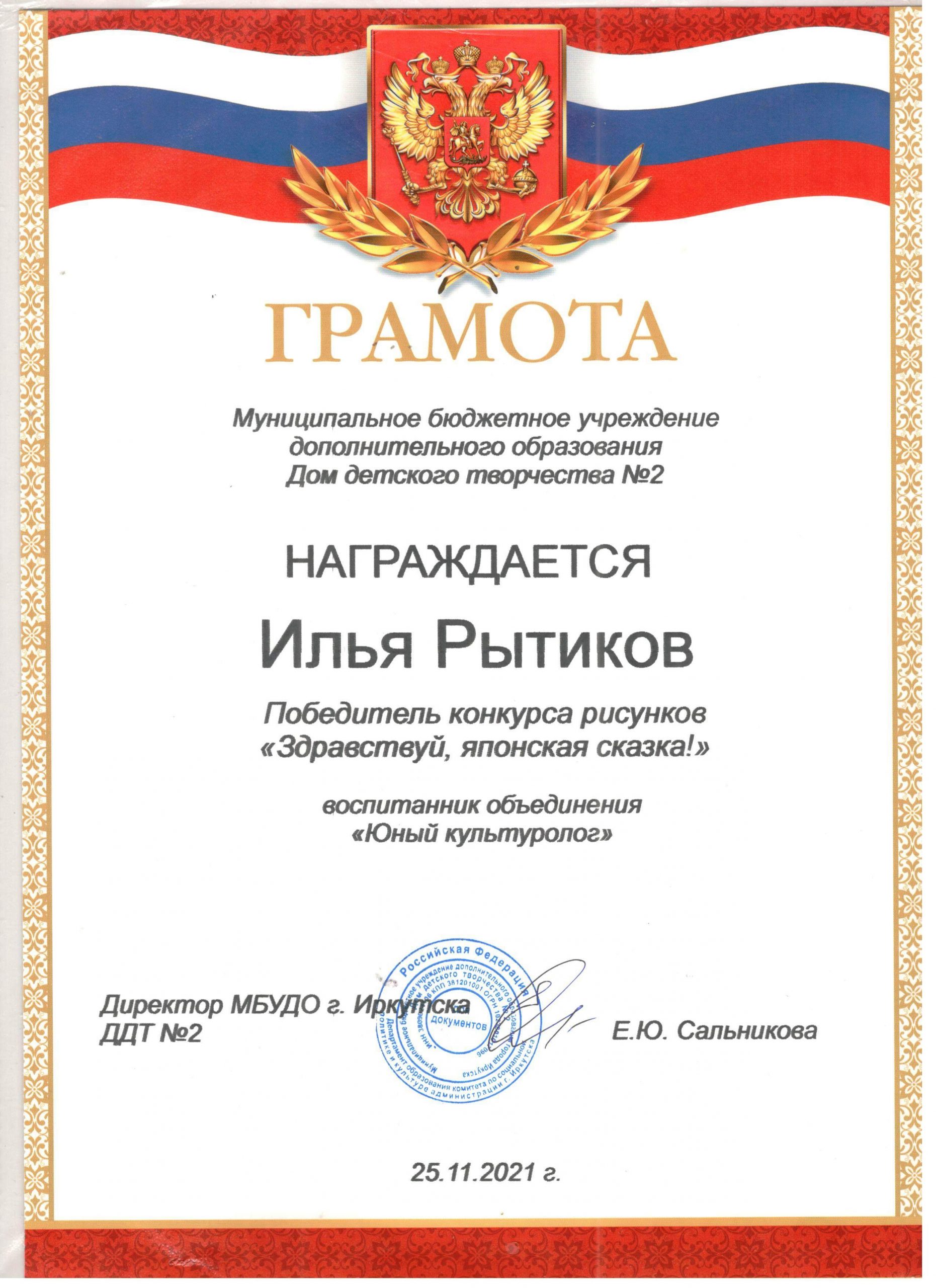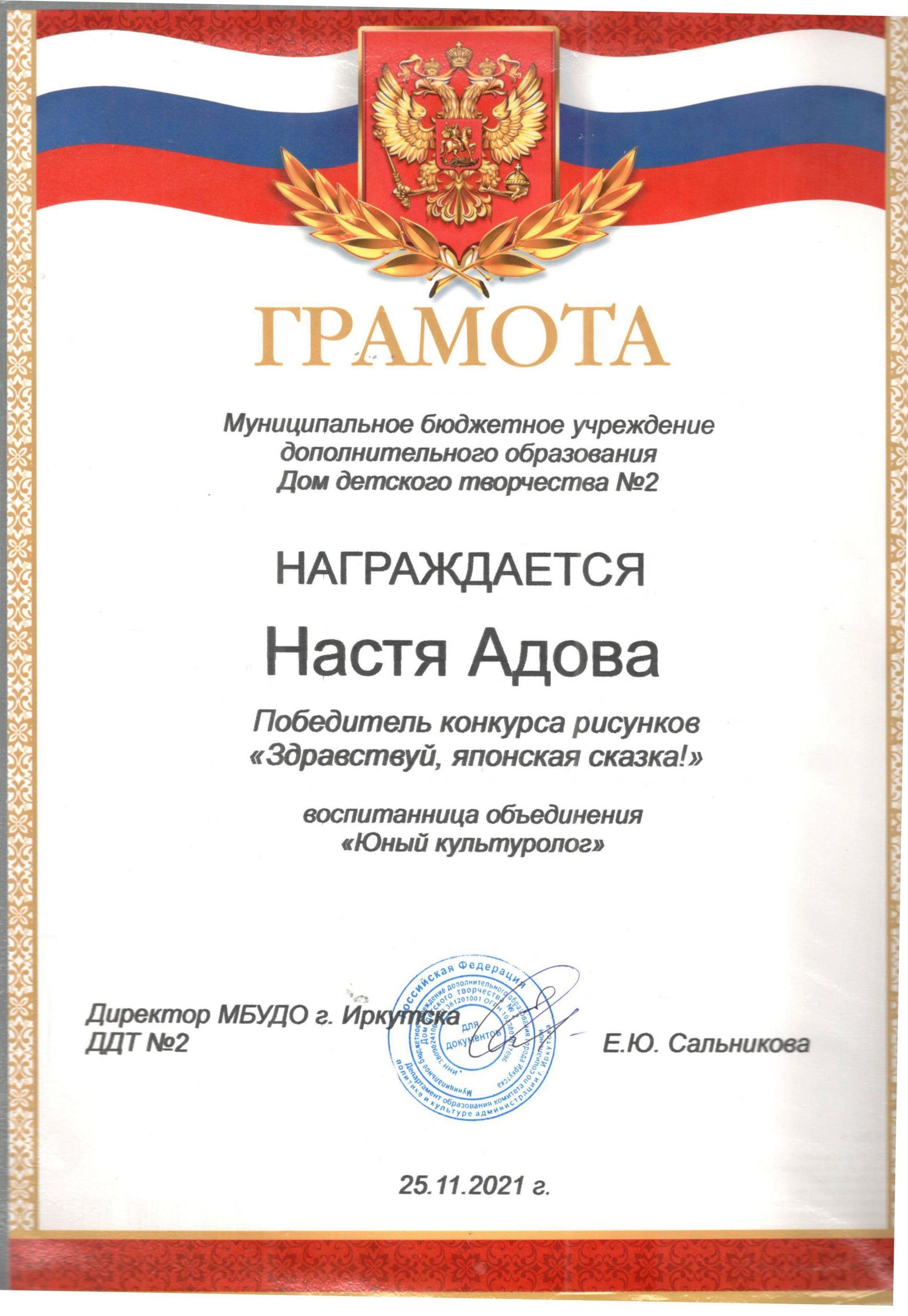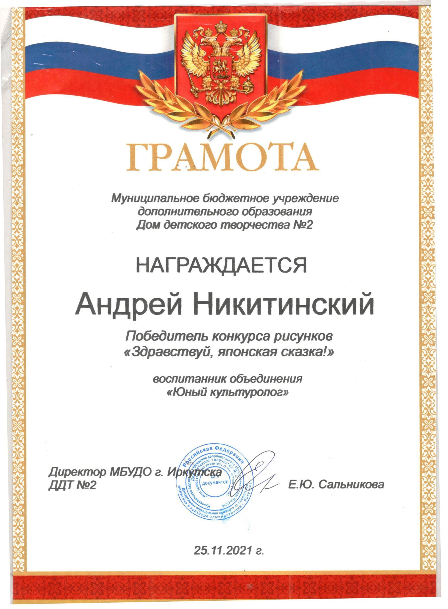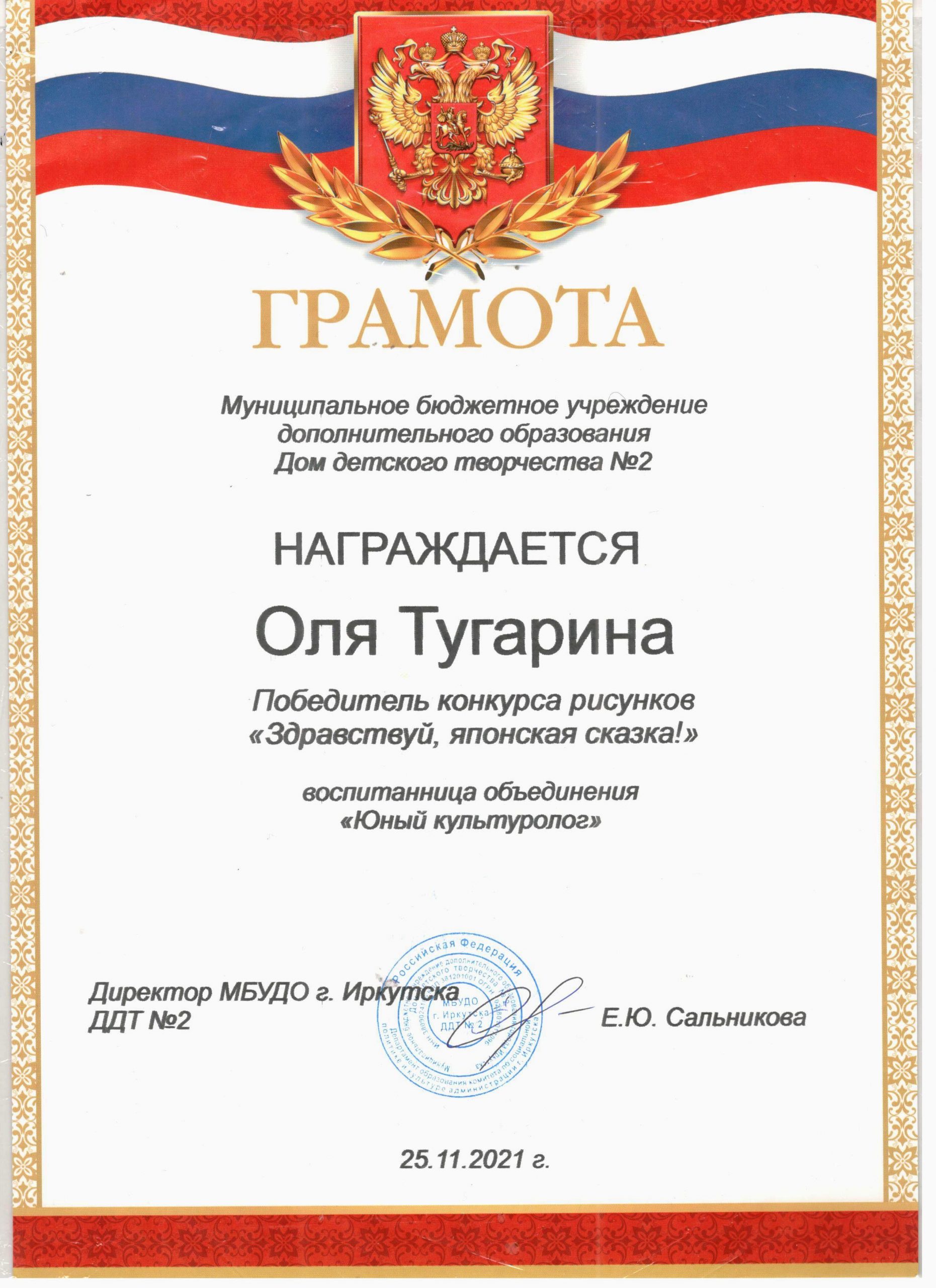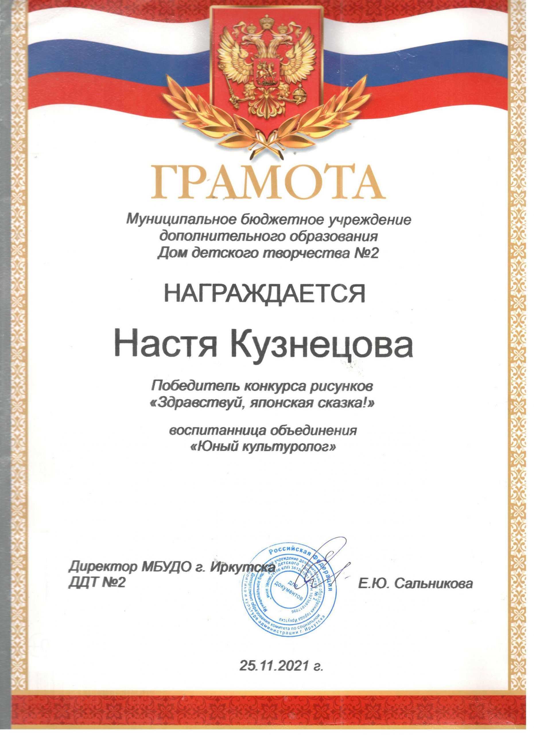 ПОЗДРАВЛЯЕМ победителей и организатора конкурса рисунков «Здравствуй, японская сказка!» руководителя объединения «Юный культуролог»