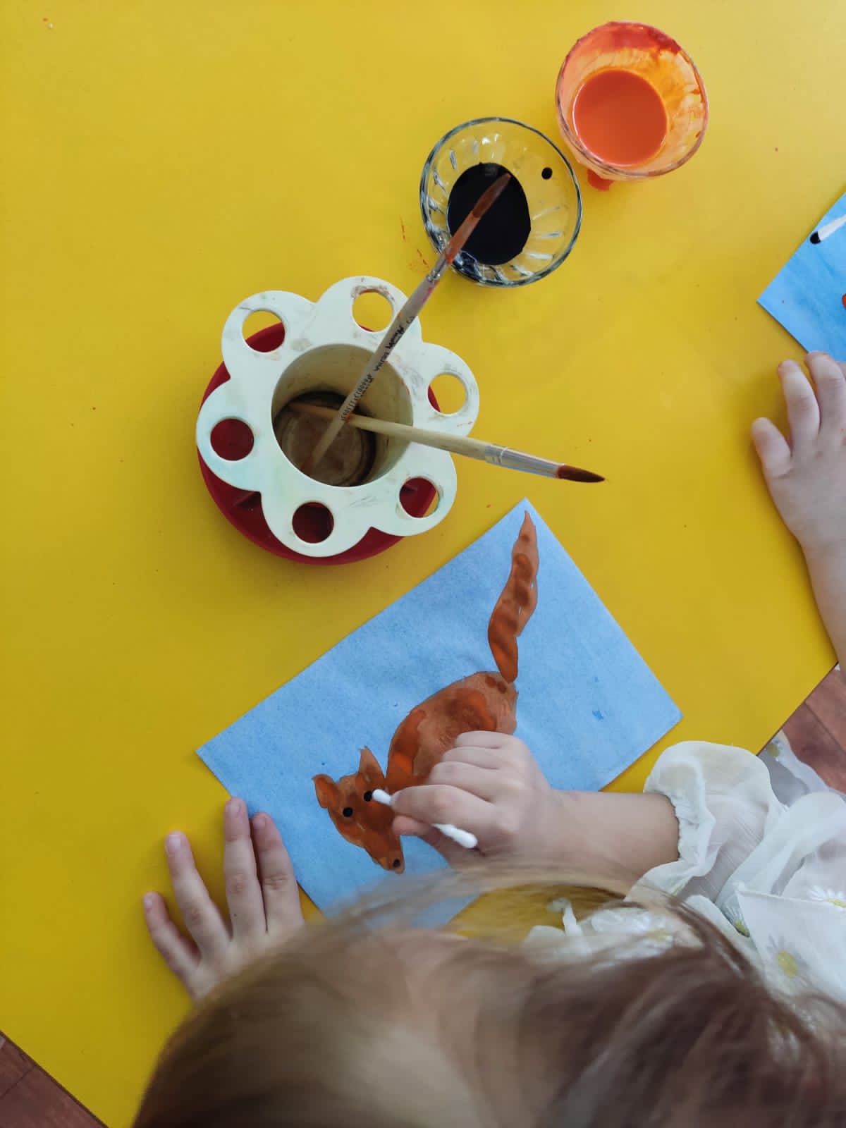 — совершенствовать умение держать правильно кисточку, прополаскивать ее после использования краски, мелкие детали прорисовывать концом кисти;