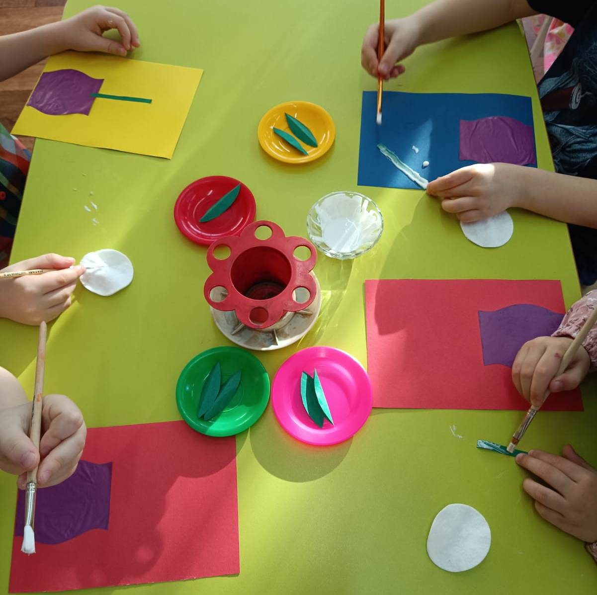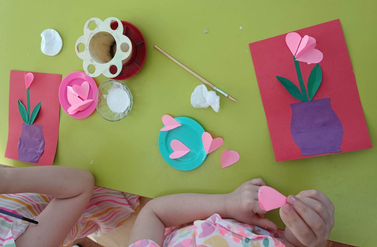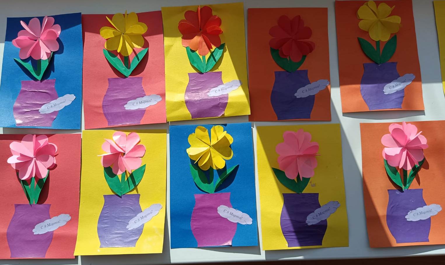 На данном занятии совершенствовали умение детей составлять композицию, продолжали учить работать с клеем, развивать творческие способности, фантазию, мелкую моторику детей. Воспитывали любовь и уважение к близким, родным людям. И вот, что у нас получилось.