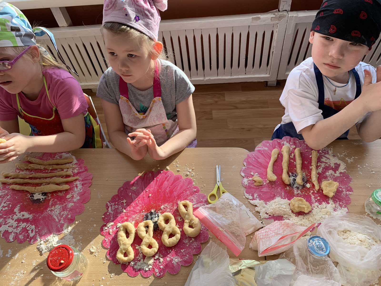 Загадали загадки о каждом из продуктов, которые мы использовали и приступили к работе. Дети старались весь процесс выполнить самостоятельно, нашу помощь старались сделать незаметной. В тесто мы «вкладывали свою душу и любовь». Крендельки делали восьмёркой, добавили кунжут, мак, корицу. После работы все дети старались аккуратно убрать за собой своё рабочее место. Во второй половине дня прошел утренник, по окончании мы пригласили мам и бабушек в группу, где дети поздравили своих самых родных с праздником. Все взяли с собой печенье и подарки, сделанные детьми. Уже вечером в комментариях написали, что печенье очень вкусное.