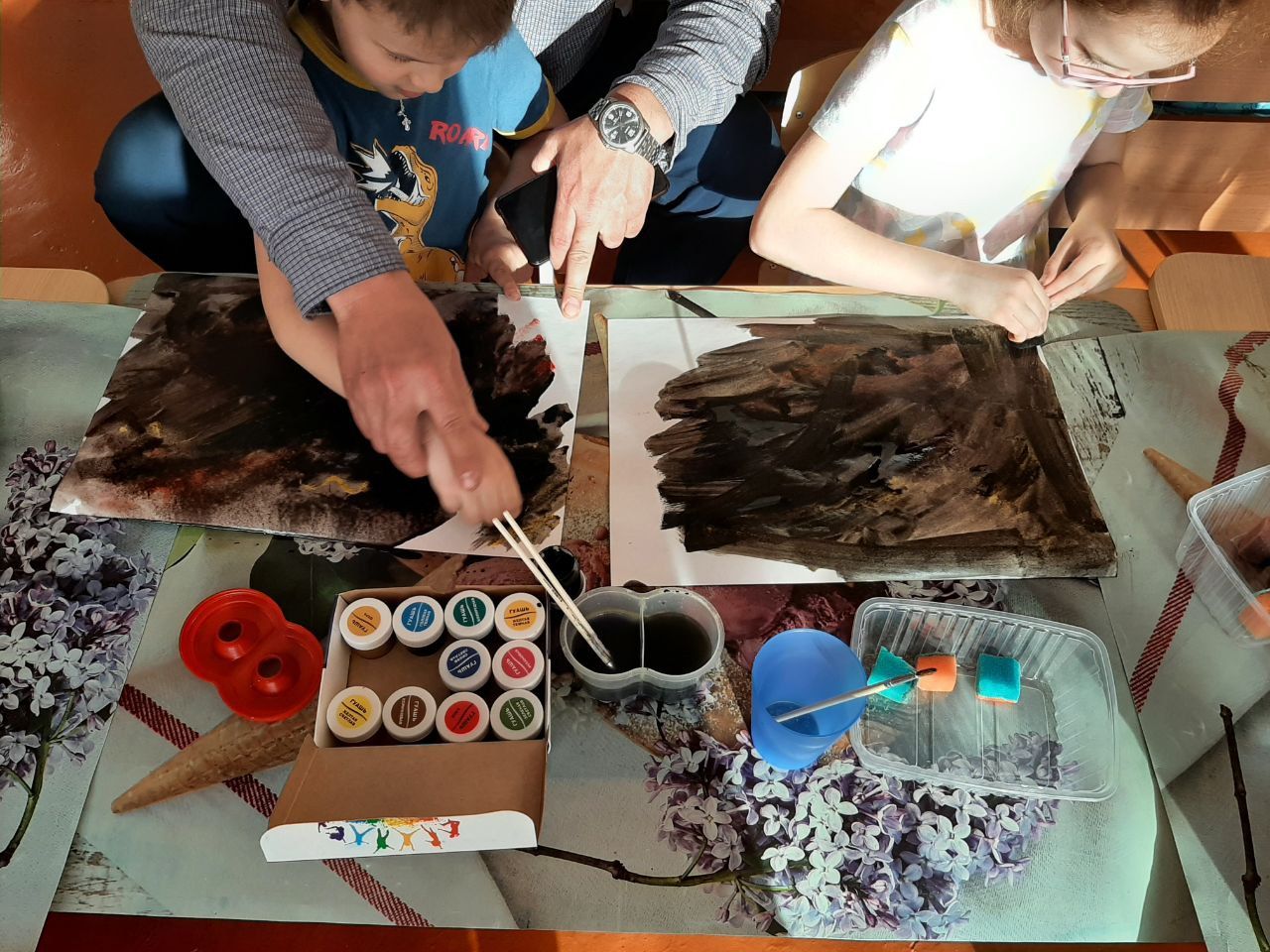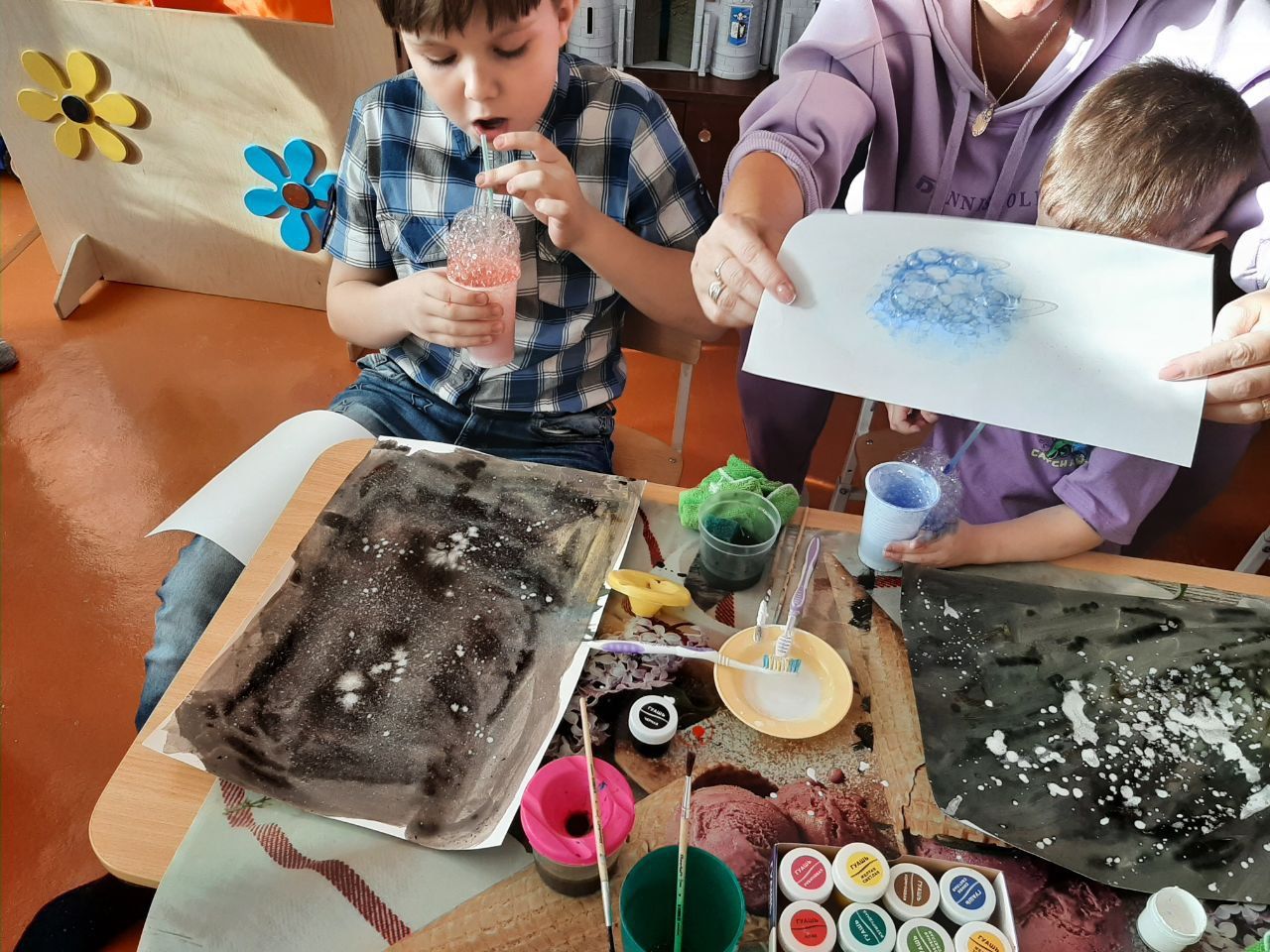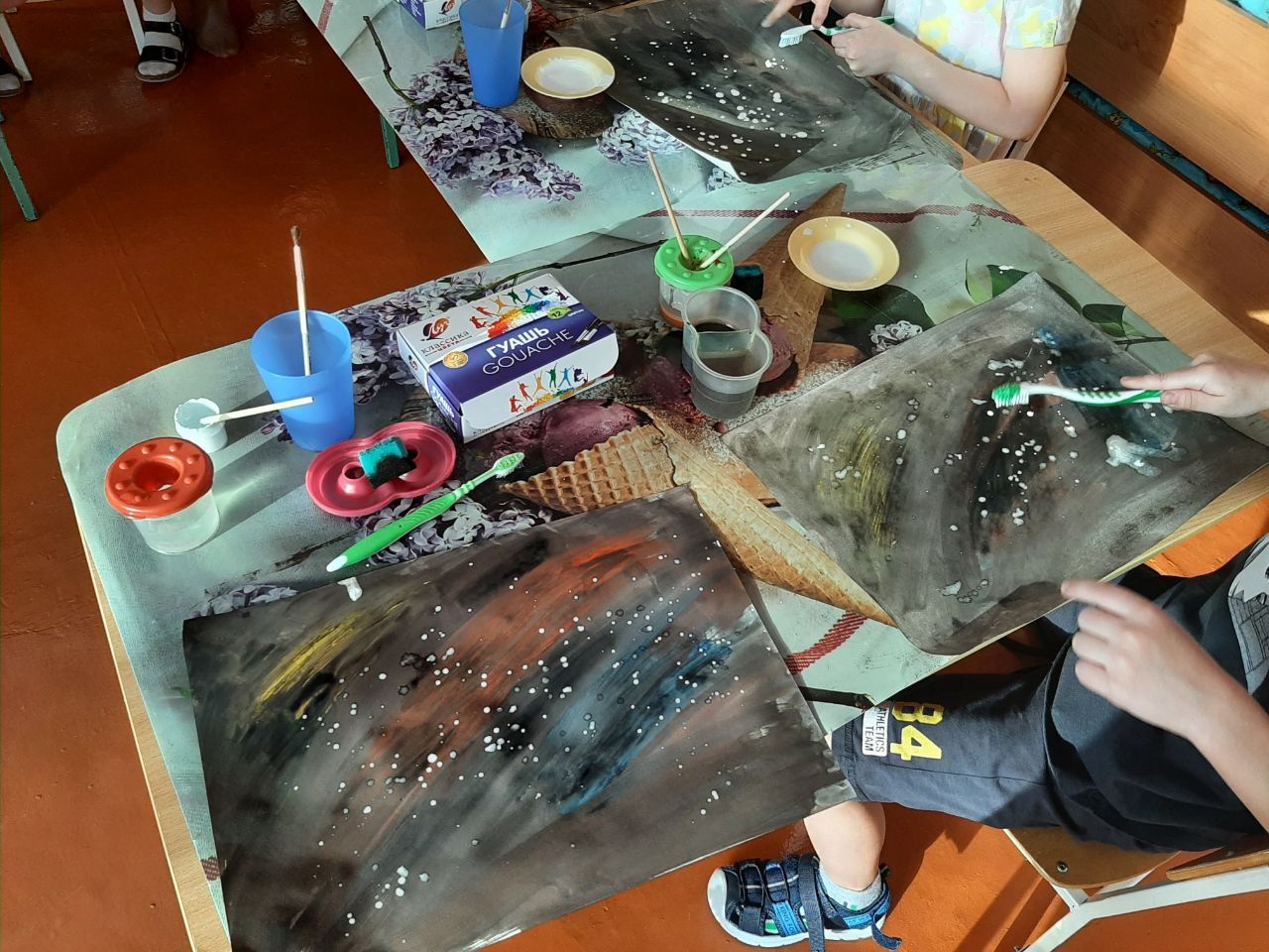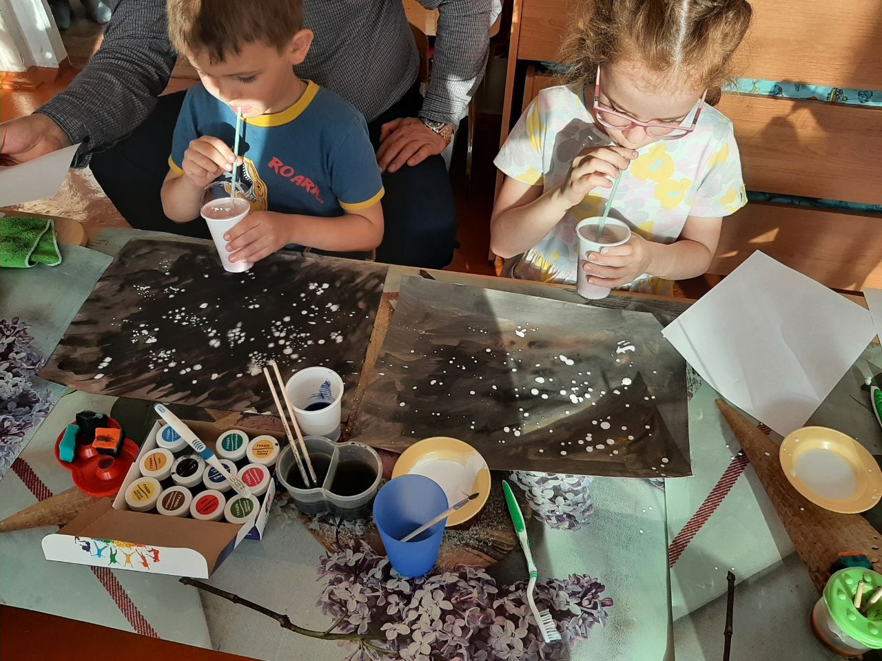 30 марта в рамках неформальной недели воспитатель Минина Анна Александровна организовала творческий час по нетрадиционной технике рисования » Этот загадочный космос». В процессе рисования использовали 3-и техники: — рисование губками; — набрызг; — рисование мыльной пеной.