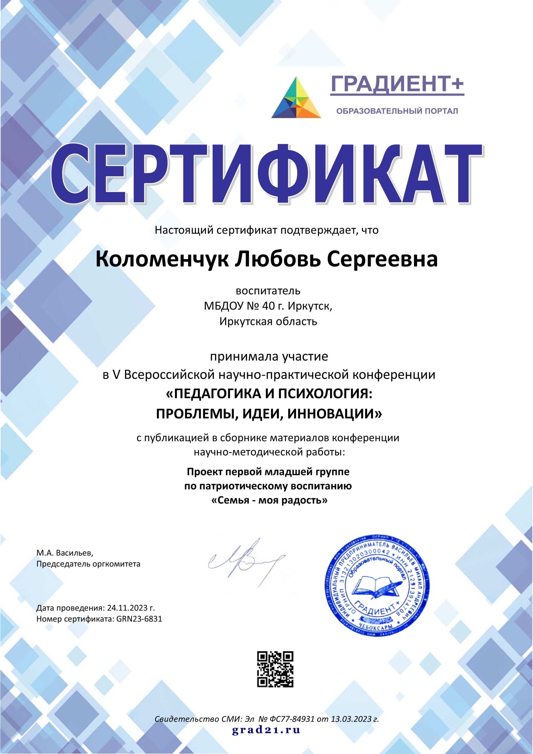 Я, Коломенчук Любовь Сергеевна, рада приветствовать вас на моей страничке!