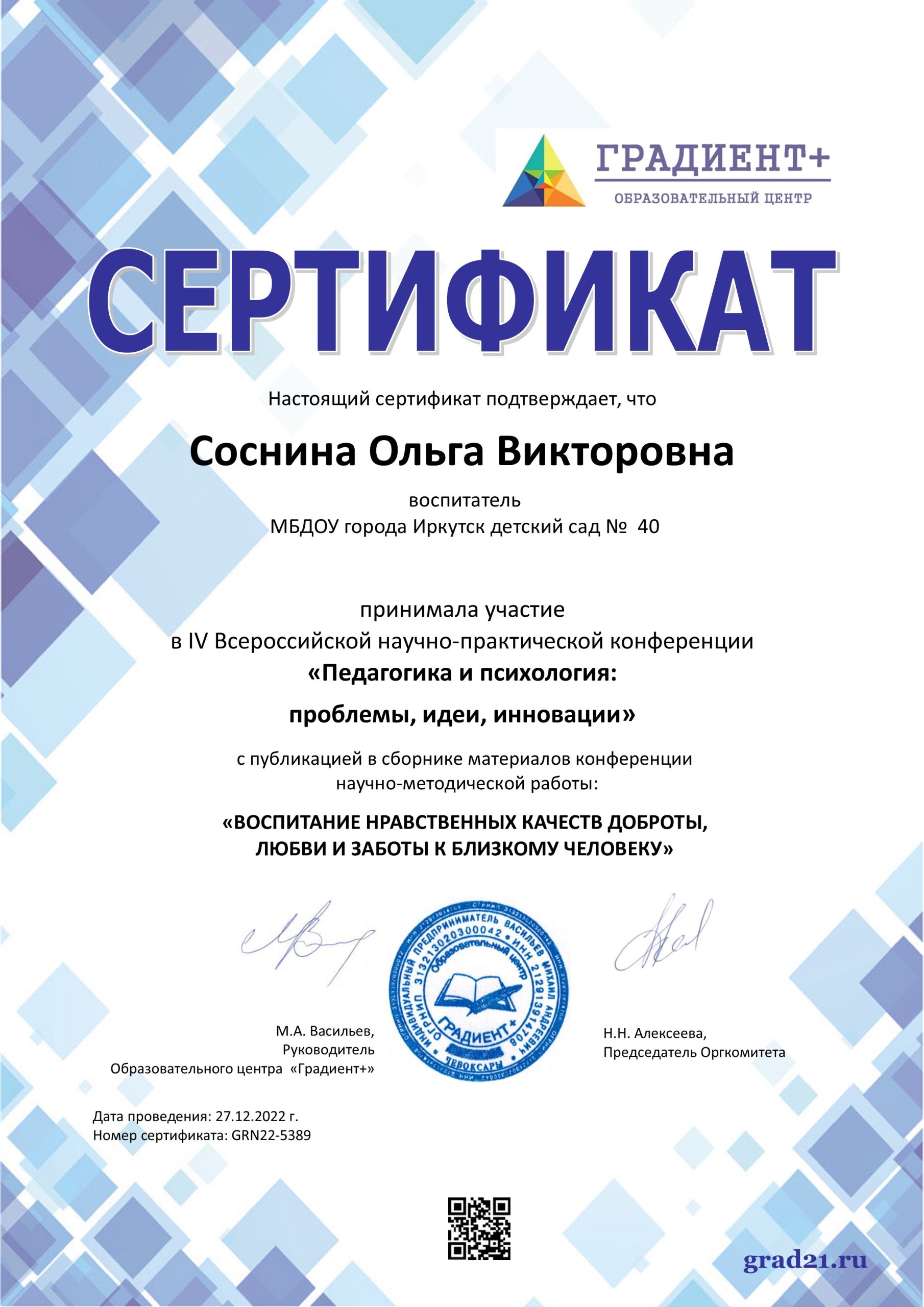 Статья «ВОСПИТАНИЕ НРАВСТВЕННЫХ КАЧЕСТВ ДОБРОТЫ, ЛЮБВИ И ЗАБОТЫ К БЛИЗКОМУ ЧЕЛОВЕКУ»