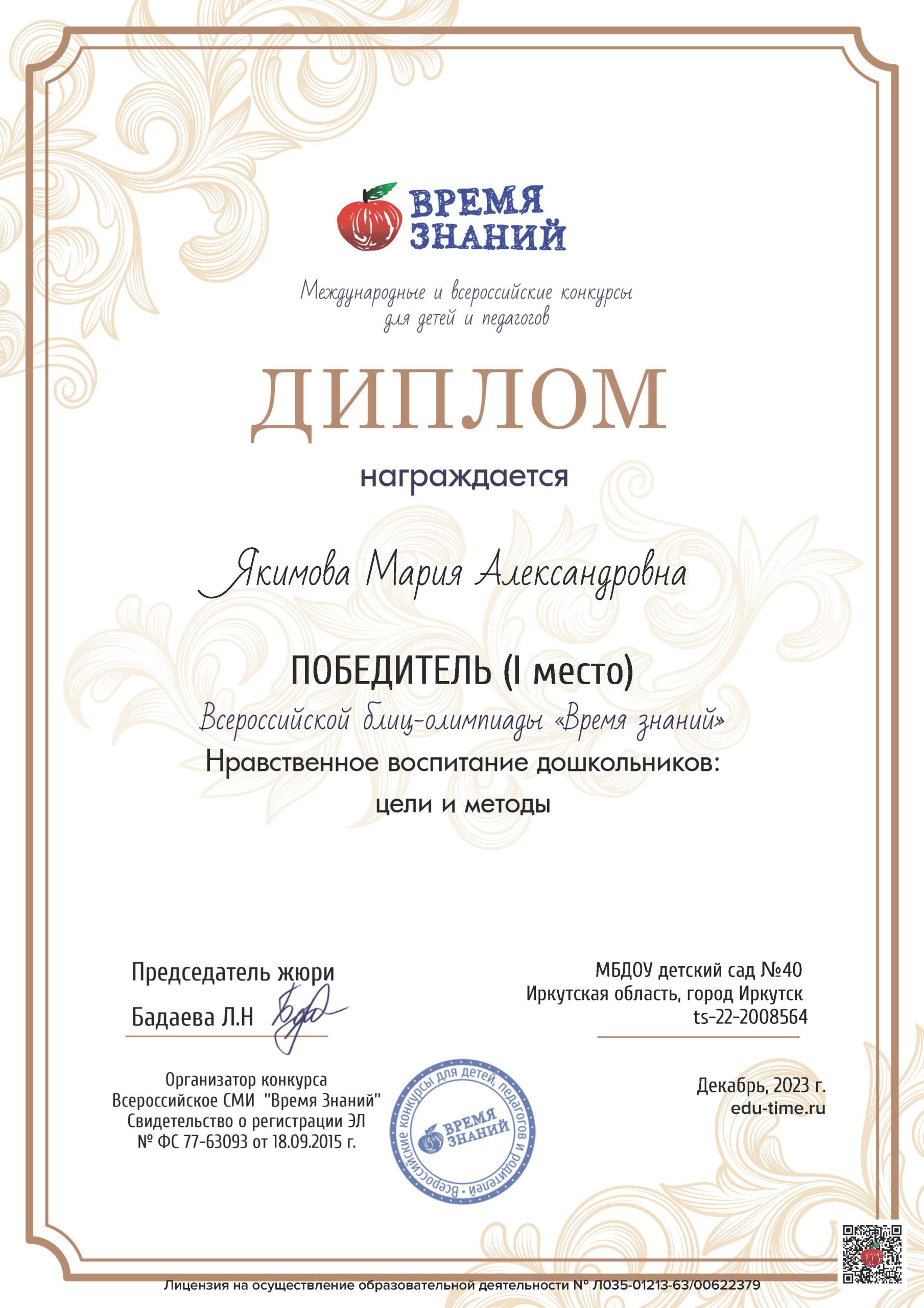 Я, Якимова Мария Александровна, рада приветствовать вас на моей страничке!