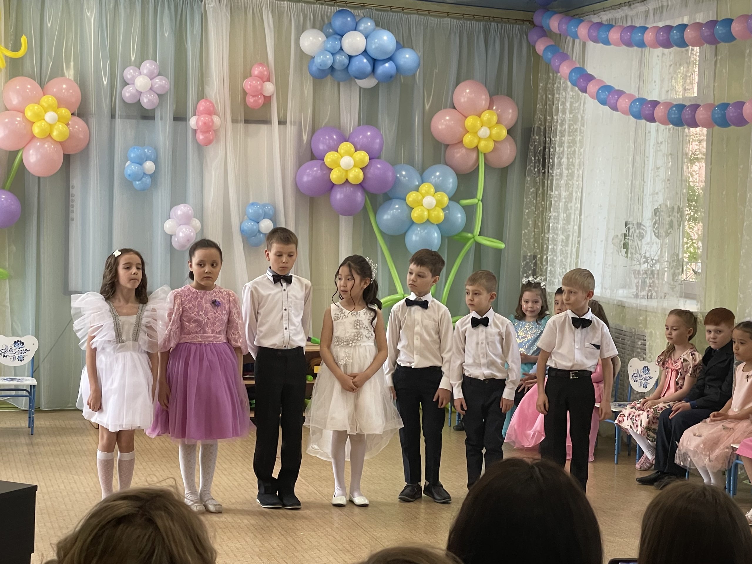 В нашем детском саду прошло четыре выпускных утренника. Подготовка к утреннику была очень волнительной и ответственной. Оформляя зал, педагоги стремились показать, как выросли наши дети: от первых неуверенных шагов- до первого выпускного бала. Были на празднике песни, танцы, игры и подарки. Сюрпризом было появление «Рюкзака», «Двоек», «Тетрадок», «Пятерок», роли которых исполняли выпускники. Ещё одним сюрпризом для детей стало появление Веселого Корреспондента, который брал интервью у детей и их родителей.