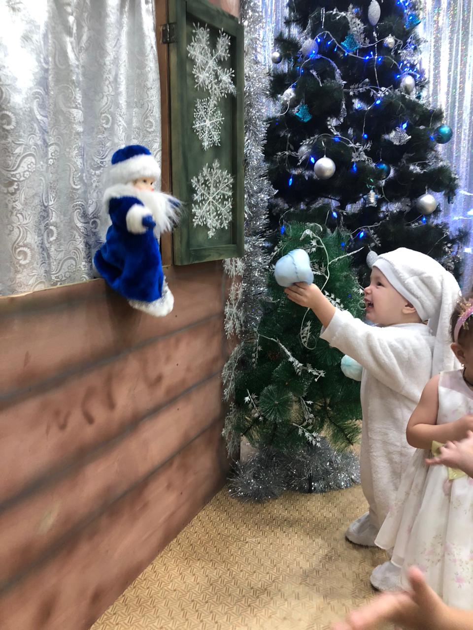 Дети пришли на праздник веселые, нарядные. Воспитатели, участвовавшие, в новогоднем представлении проявили себя хорошими артистами, показав всё своё творческое мастерство, задор и организаторские способности. К детям приходили-Снегурочка, Де очень активны: пели песни про елочку, про Деда Мороза, читали стихи Деду Морозу.