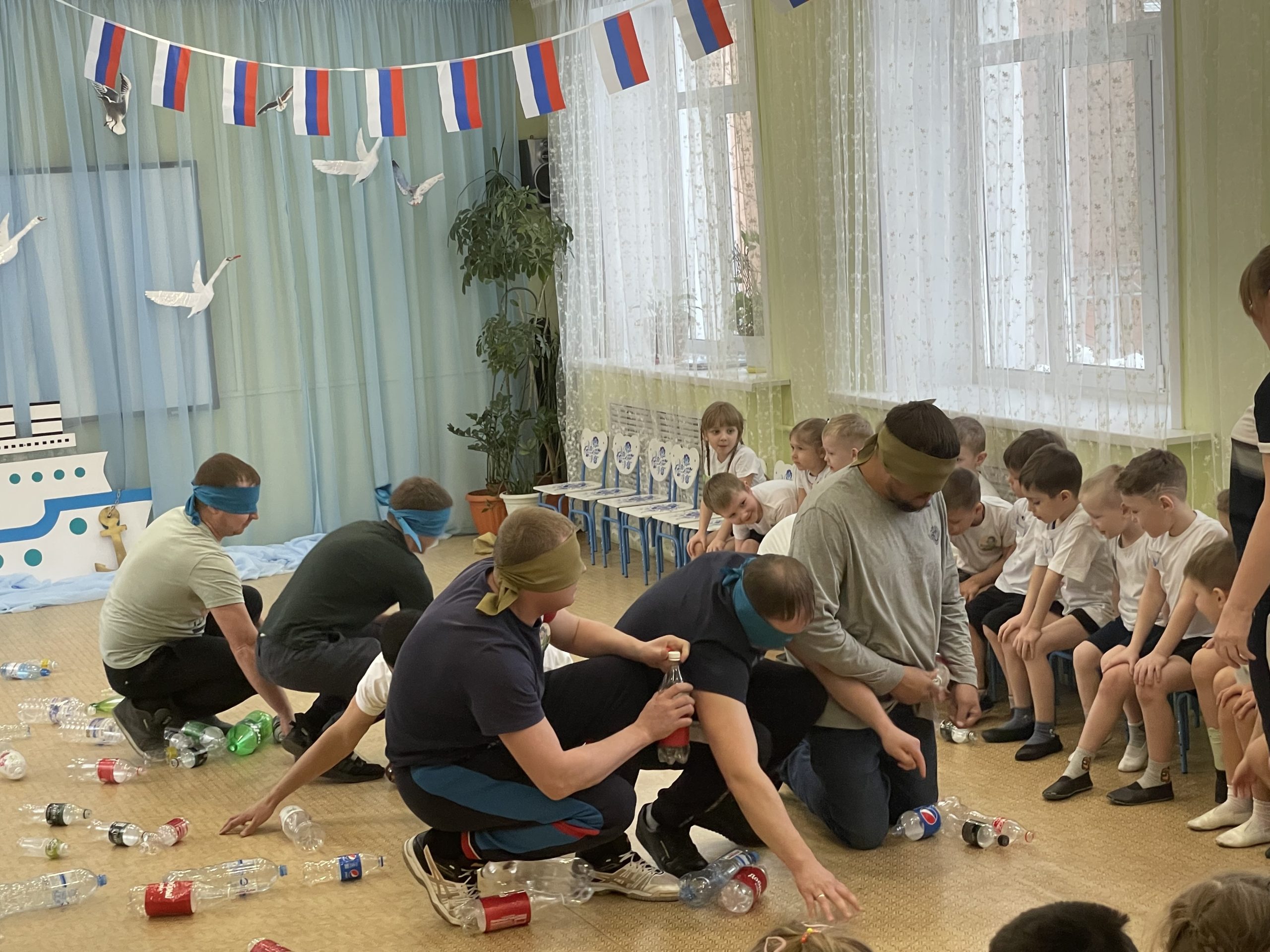 Дети вместе с папами продемонстрировали всю свою силу, ловкость и смекалку на празднике. В веселых конкурсах участвовали дети со своими папами. Интересно подобранные задания не оставили равнодушными ни самых стеснительных детей, ни самых серьезных пап.