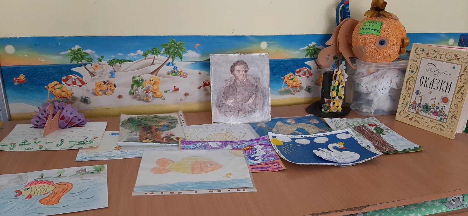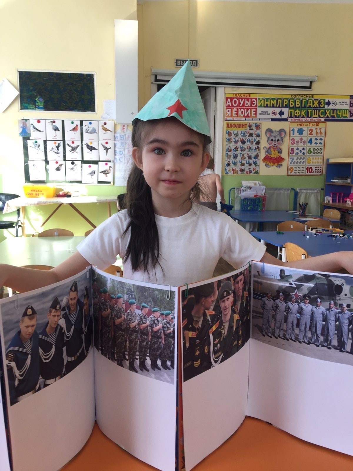 Коридор детского сада украшали совместно-творческие выставки детей и родителей, где представлена различная военная техника, открытки, различные военные профессии.