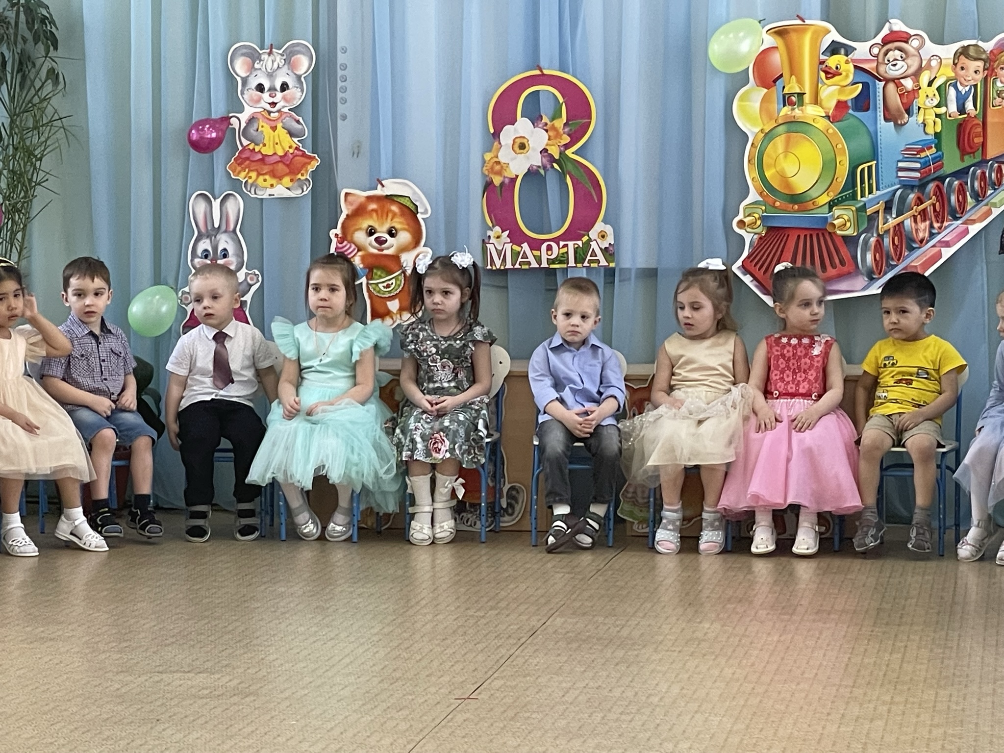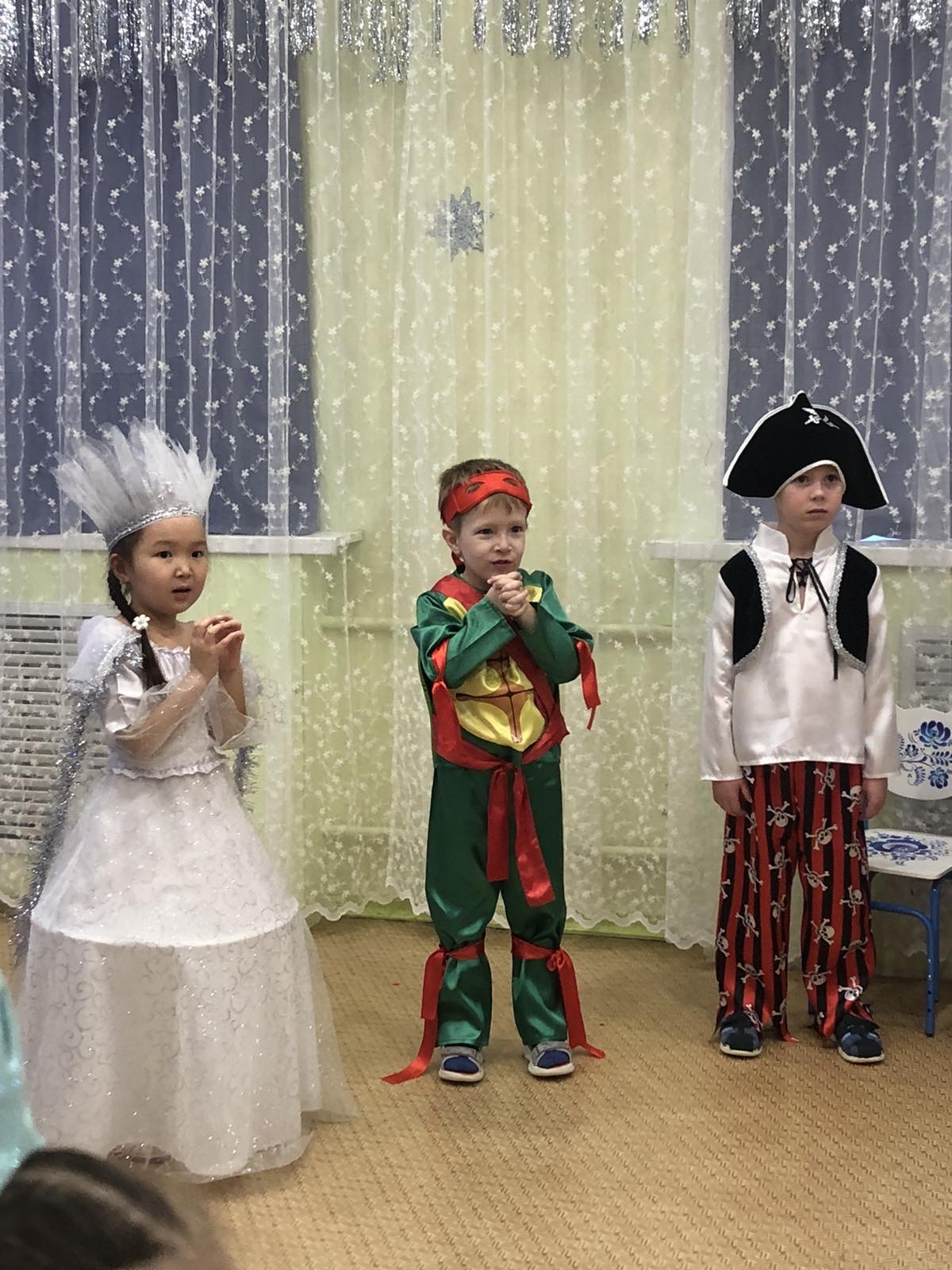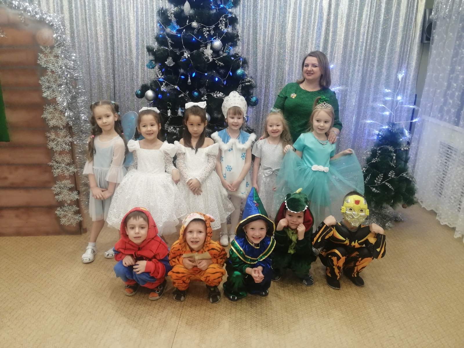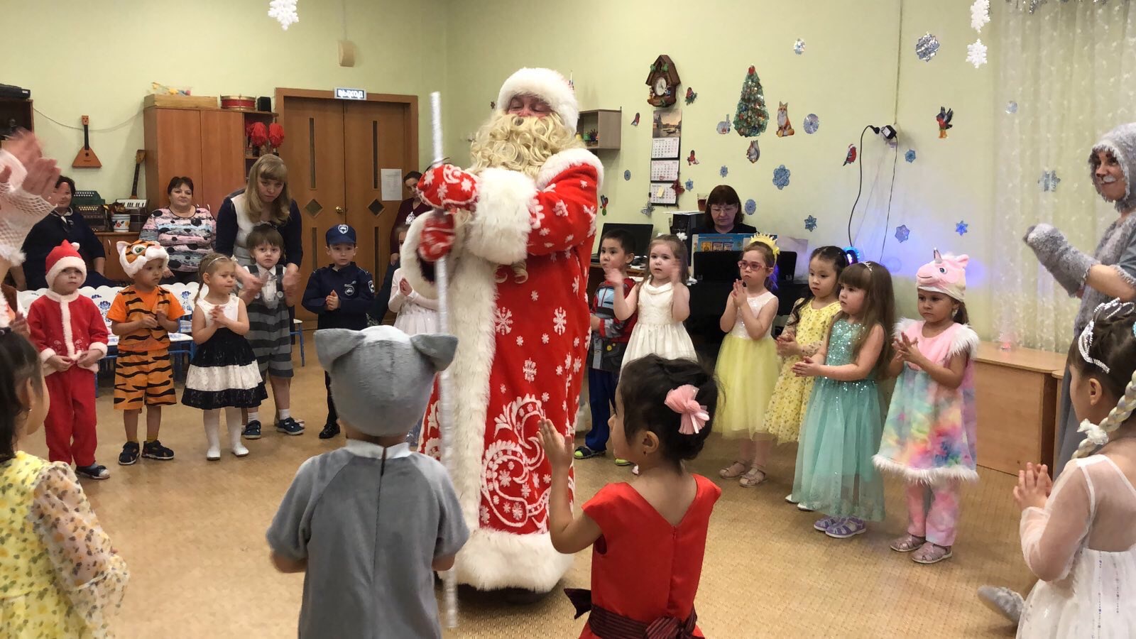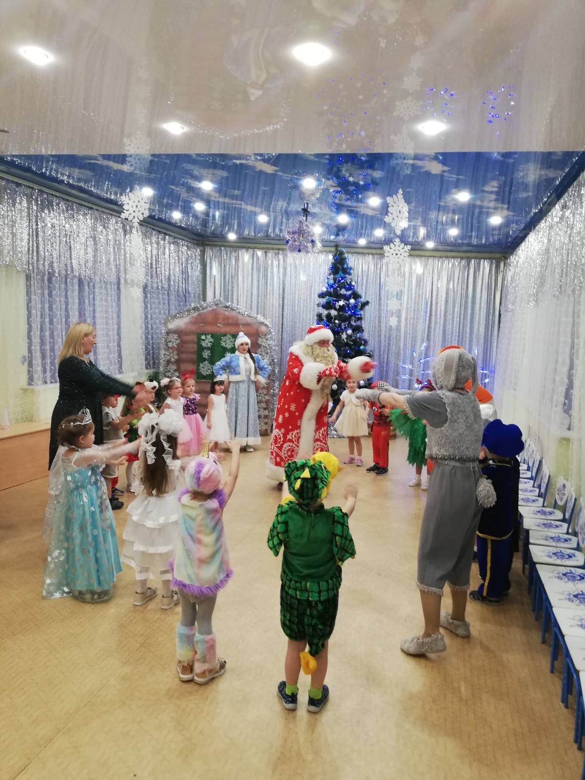 Дети пришли на праздник веселые, нарядные. Воспитатели, участвовавшие, в новогоднем представлении проявили себя хорошими артистами, показав всё своё творческое мастерство, задор и организаторские способности. К детям приходили-Снегурочка, Де очень активны: пели песни про елочку, про Деда Мороза, читали стихи Деду Морозу.