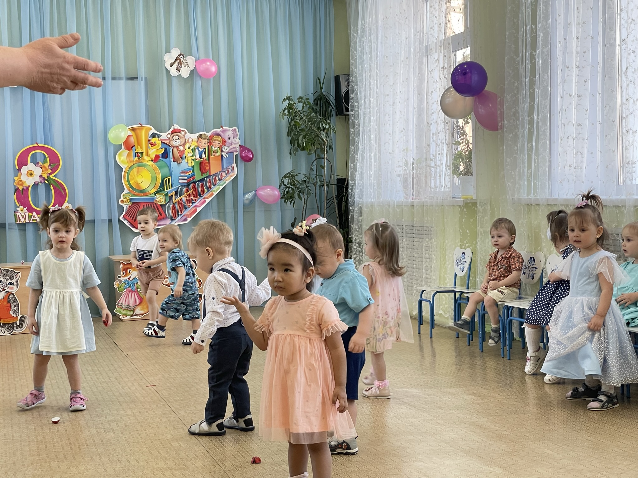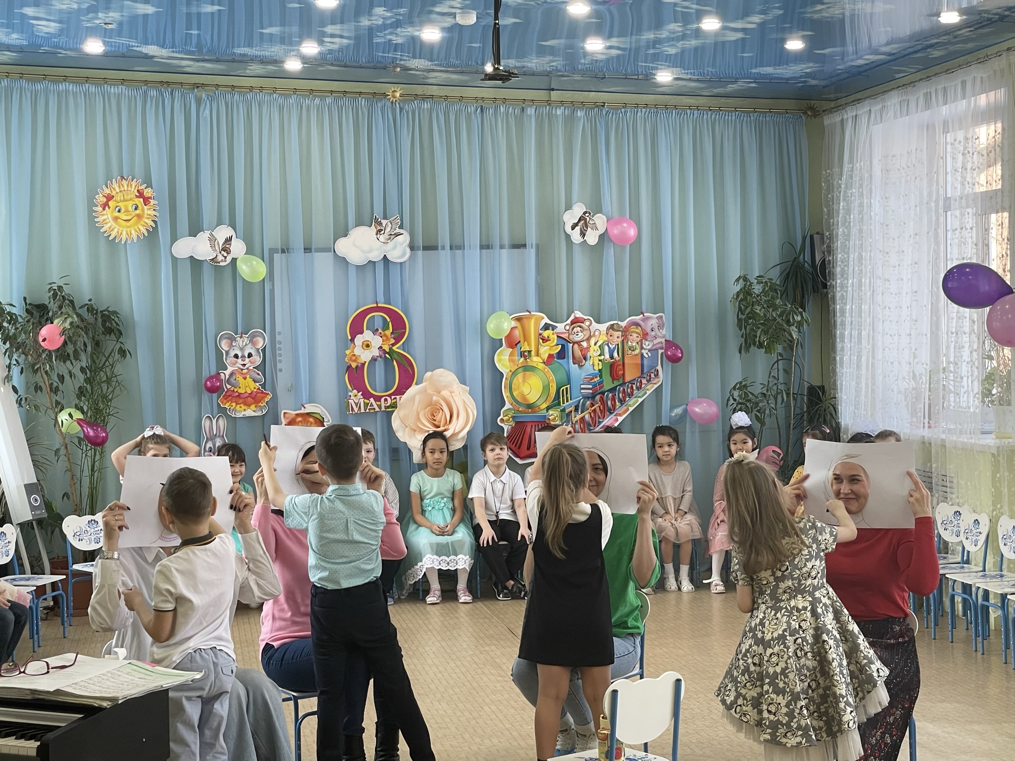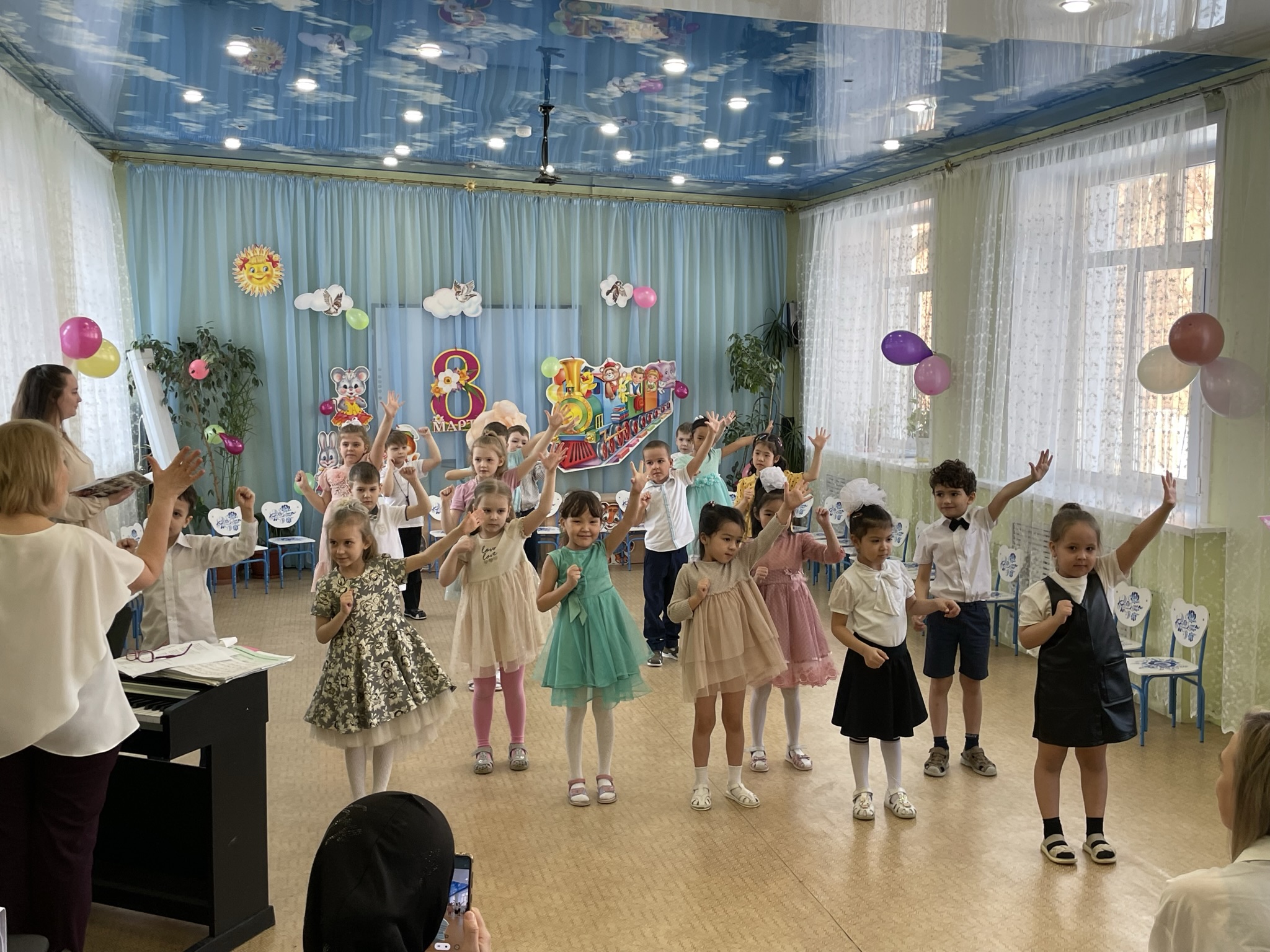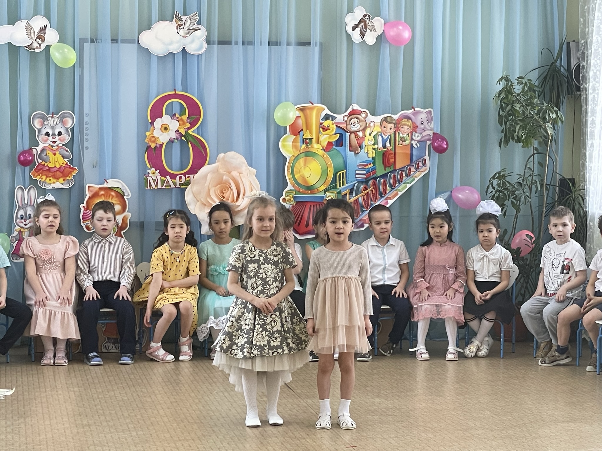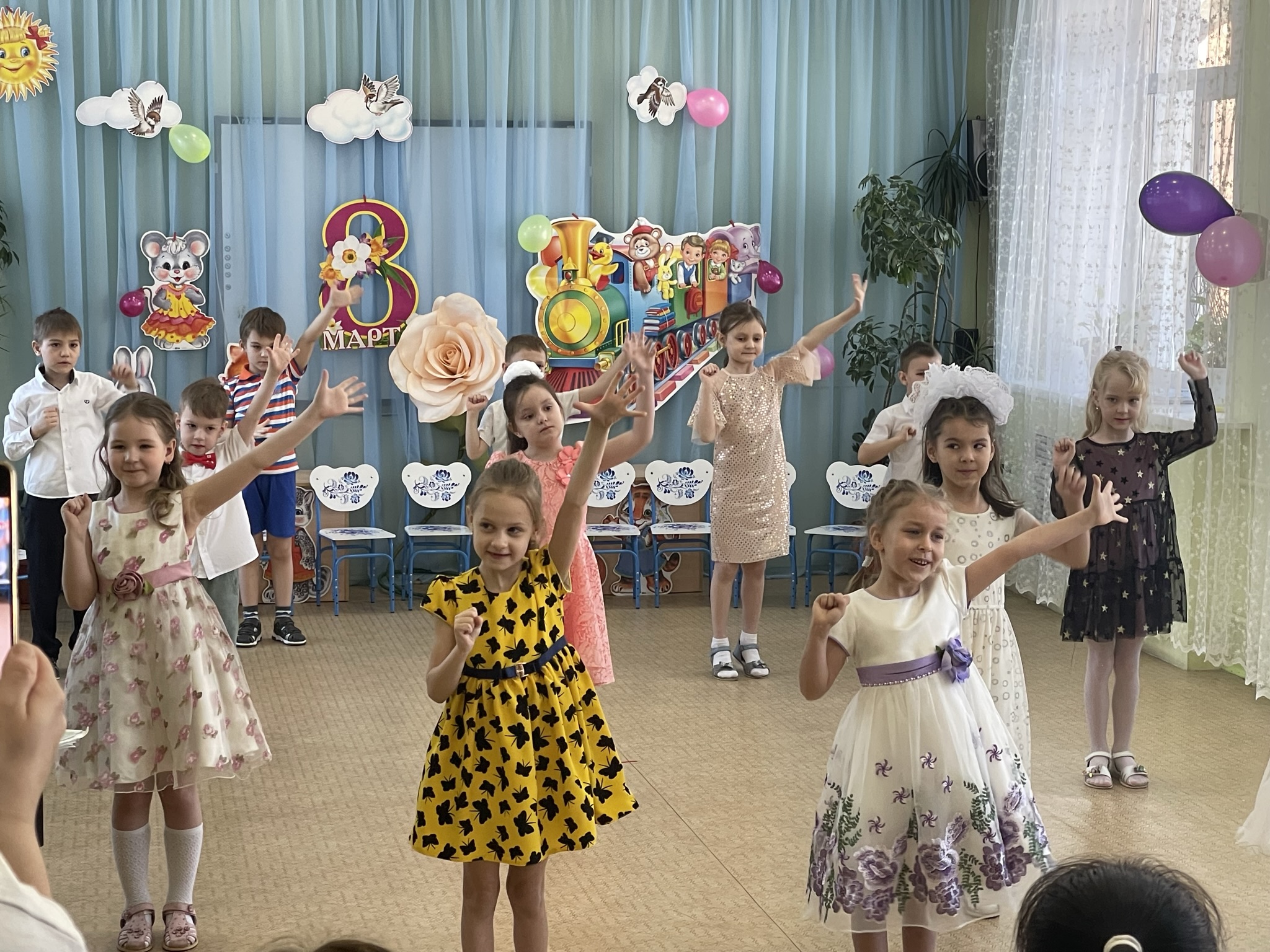Дети пришли на праздник веселые, нарядные. Воспитатели, участвовавшие, в новогоднем представлении проявили себя хорошими артистами, показав всё своё творческое мастерство, задор и организаторские способности. К детям приходили-Снегурочка, Де очень активны: пели песни про елочку, про Деда Мороза, читали стихи Деду Морозу.