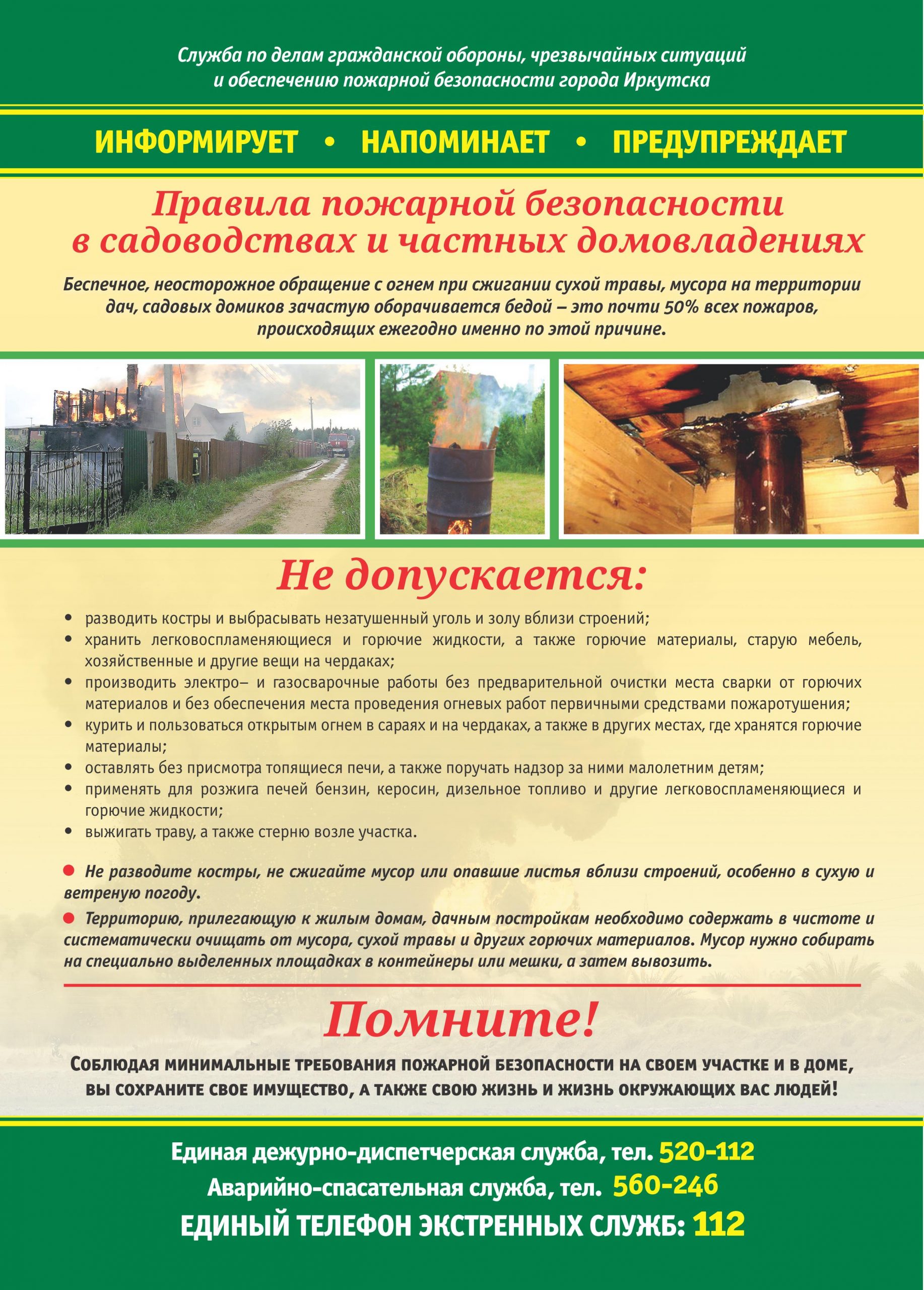 В целях стабилизации обстановки с пожарами и гибелью людей на территории г. Иркутска и Иркутской области, просит разместить информацию: