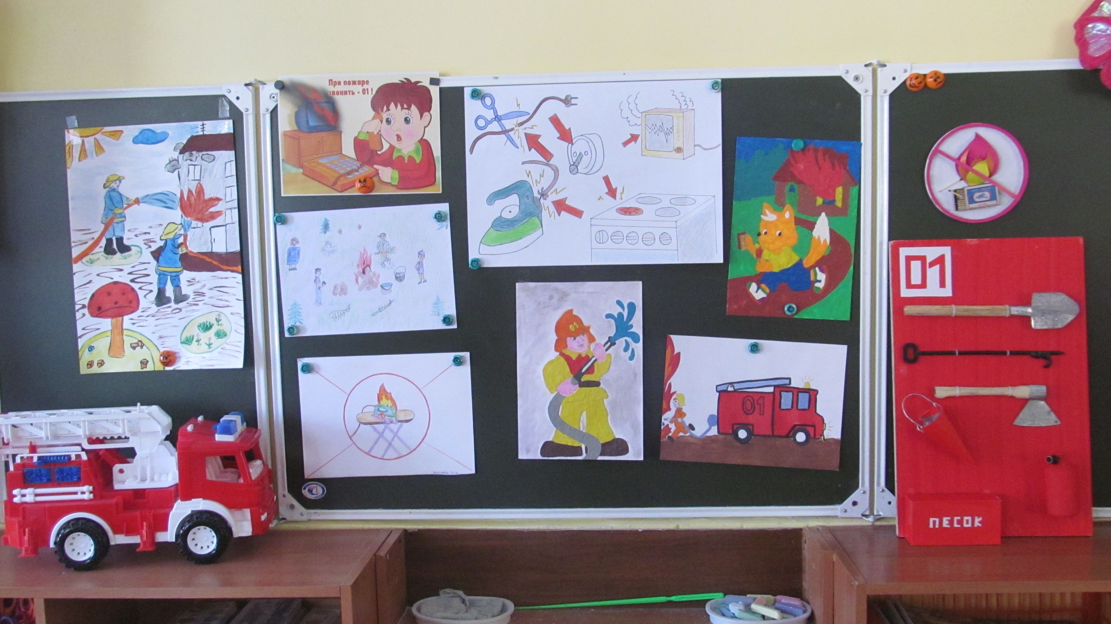 С правилами пожарной безопасности для детей в ДОУ воспитатели должны в обязательном порядке знакомить всех воспитанников дошкольного образовательного учреждения с целью предотвращения пожароопасных ситуаций и сохранения здоровья и жизни детей в случае возникновения пожара. На выставке представлены индивидуальные и коллективные работы дошкольников, а так же совместные работы детей и родителей.
