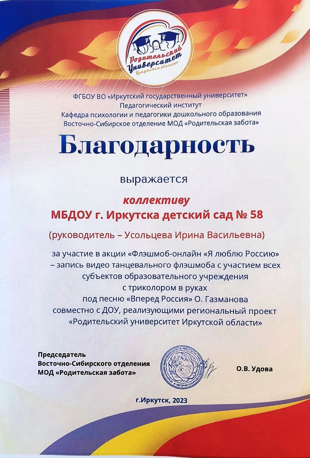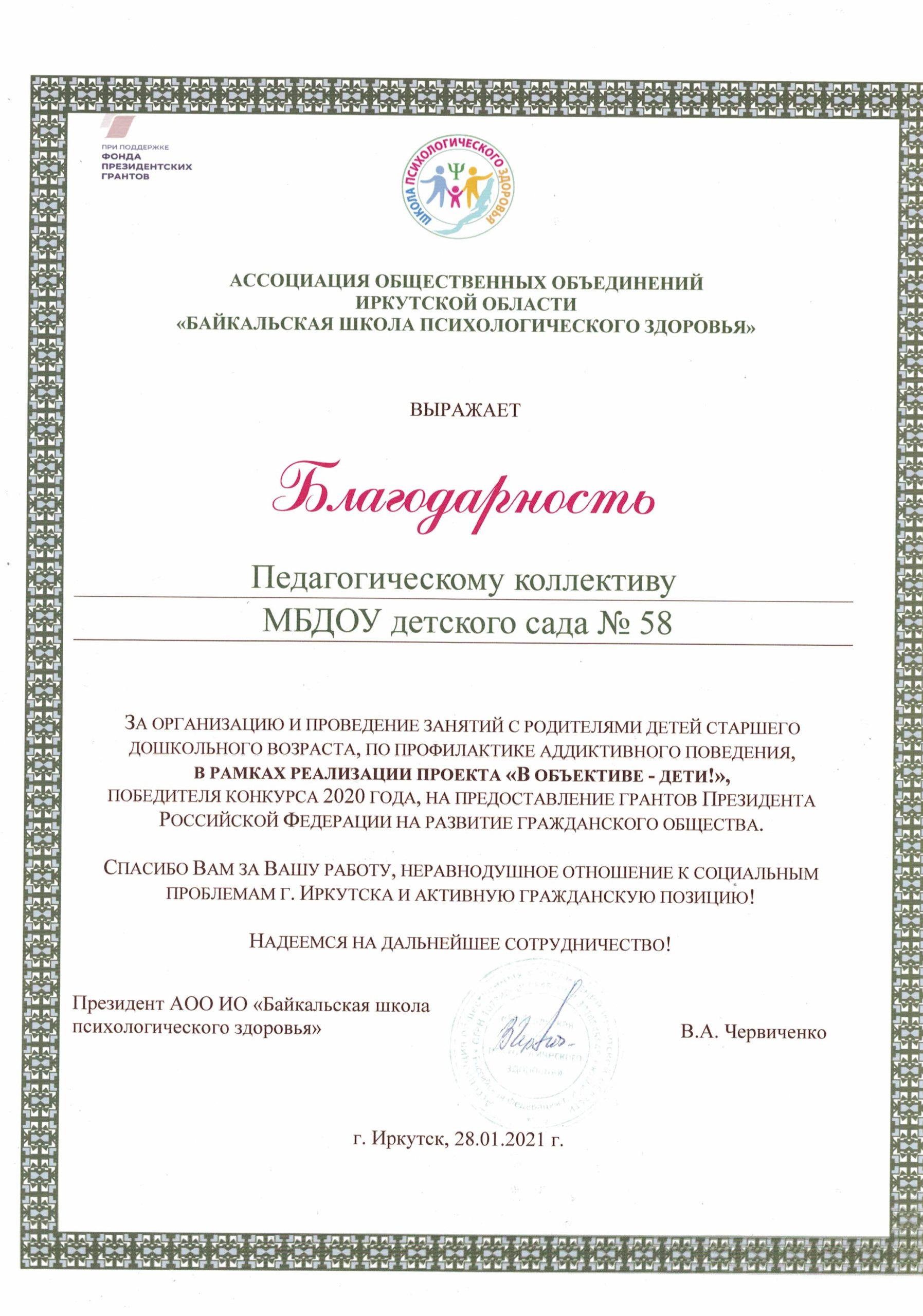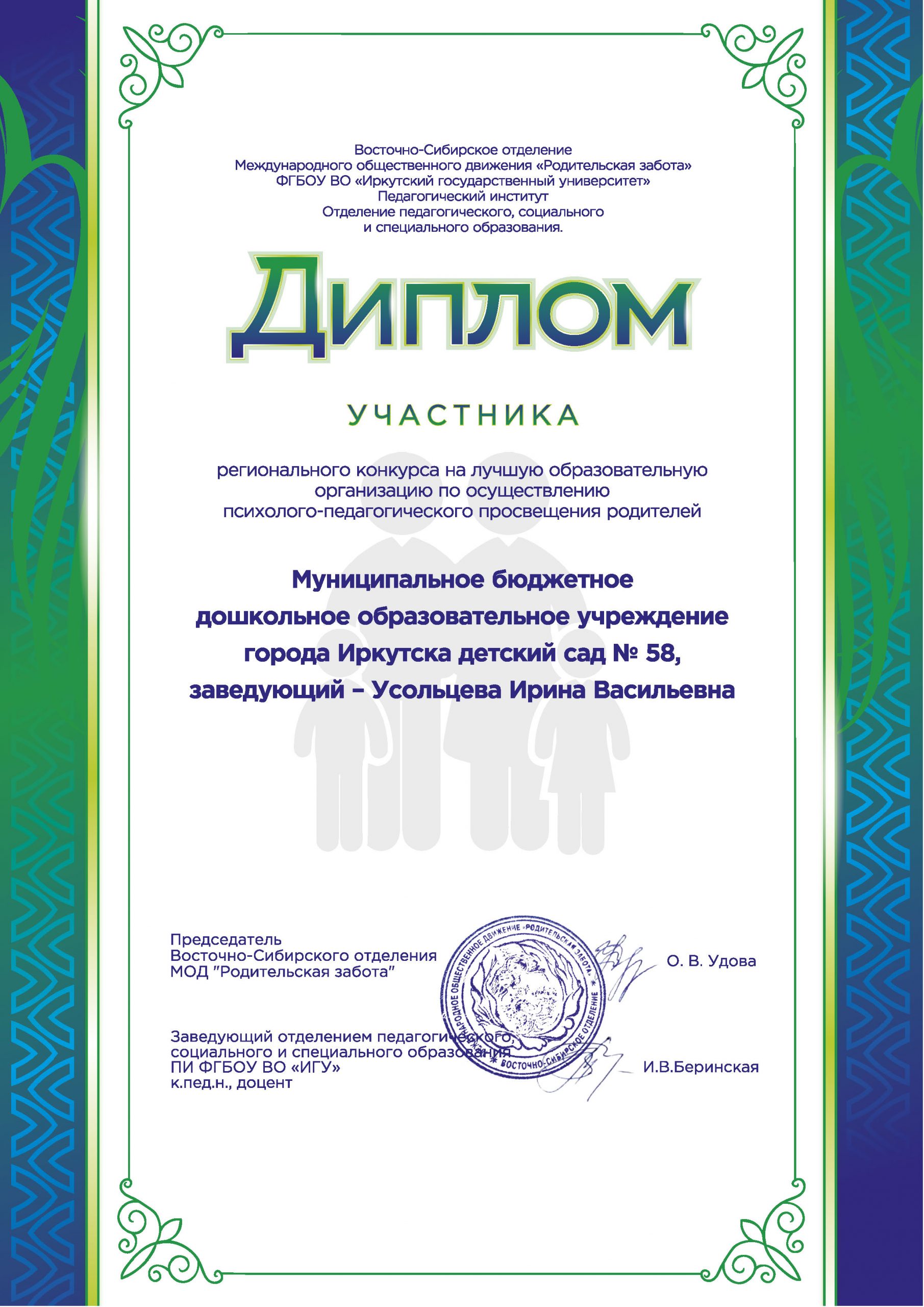 МБДОУ г. Иркутска детский сад № 58