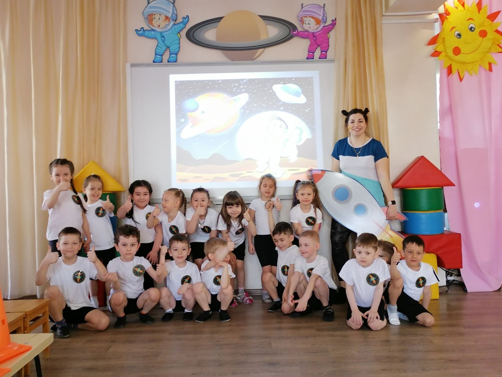 Тематические развлечения и выставка детских работ посвященные дню космонавтики
